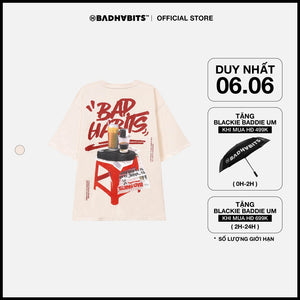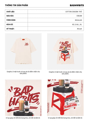Áo Thun Unisex BAD HABITS CÀ PHÊ TEE 100% Cotton - MÀU KEM - Local Brand Chính Hãng
