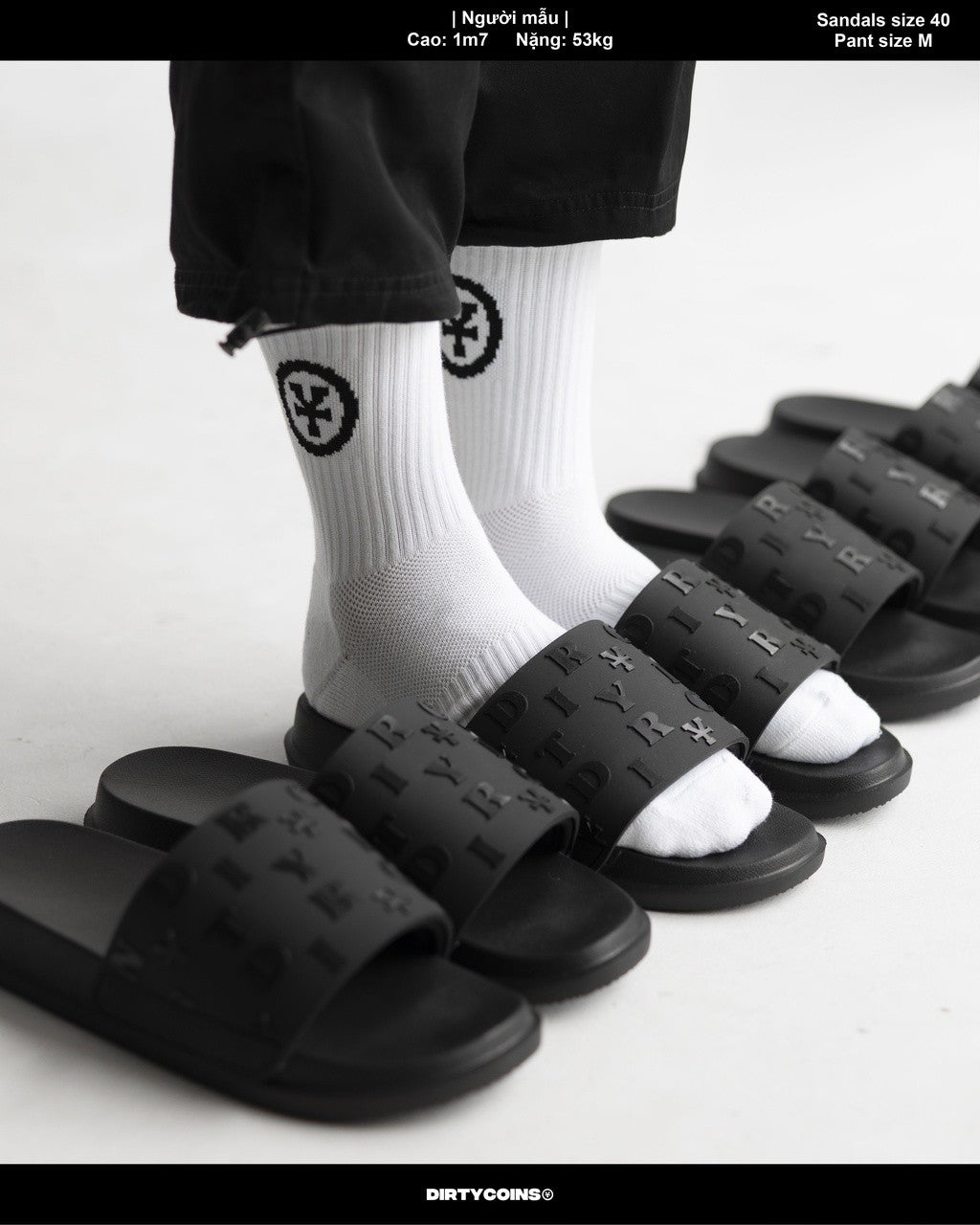 • Hoạ tiết DirtyCoins nổi khối trên quai dép, có hiệu ứng bề mặt bóng.