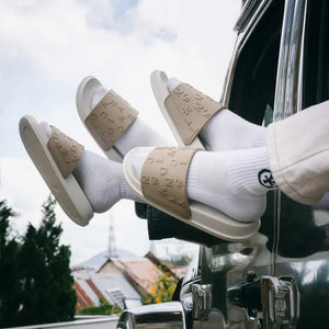 • Hoạ tiết DirtyCoins nổi khối trên quai dép, có hiệu ứng bề mặt bóng.