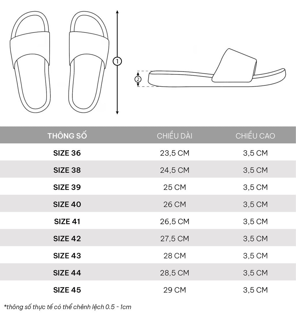 • Nên chọn size lớn hơn 1 size so với size giày thường đi để có cảm giác thoải mái nhất.