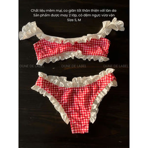 DUNE DE LABEL l Bikini 2 Mảnh Thiết Kế Bèo Nhún Hoạ Tiết Caro Đỏ l GINGHAM BIKINI 02