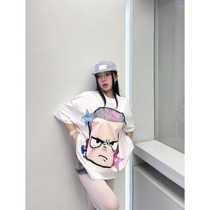 • Graphic trên áo sử dụng kết hợp kỹ thuật in kéo lụa và decal đá