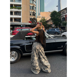 • Quần camo pixel ống rộng, độ dài phủ gót