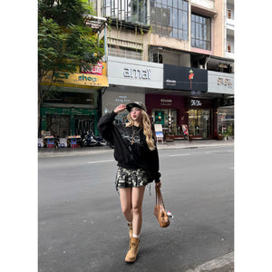 • Váy kaki camo ngắn, xếp ly, khoá kéo