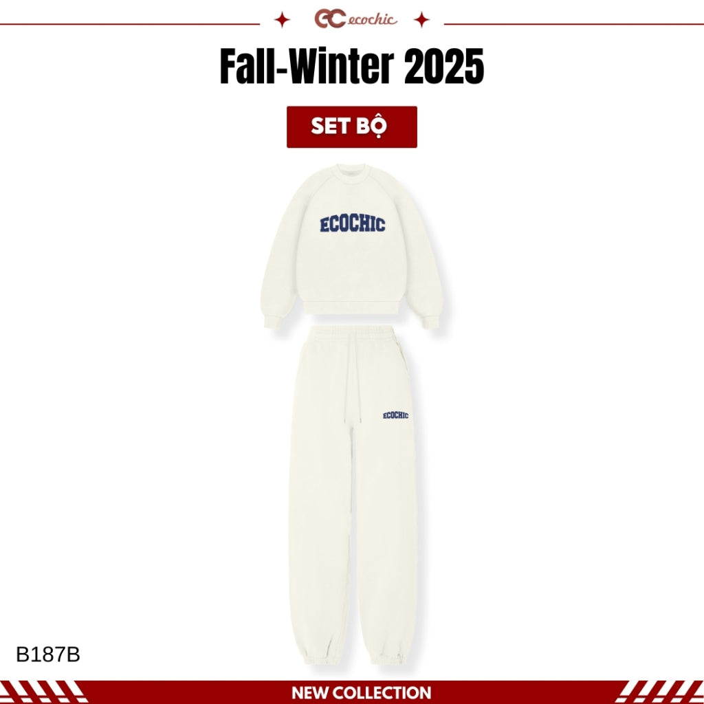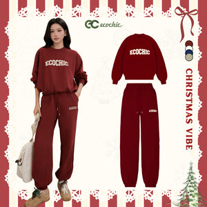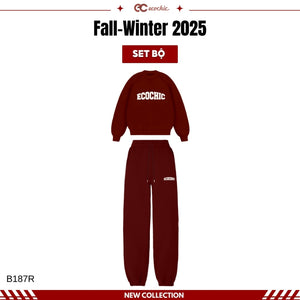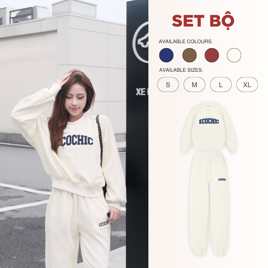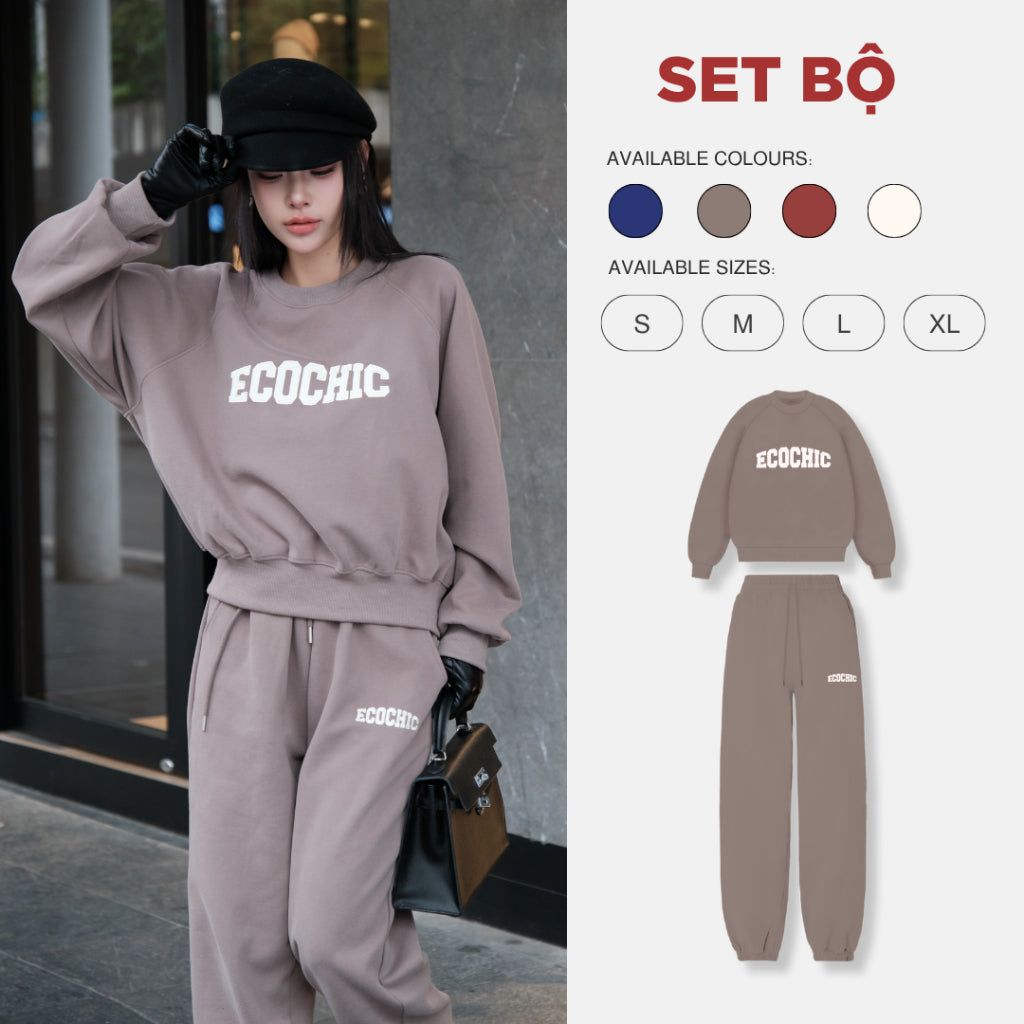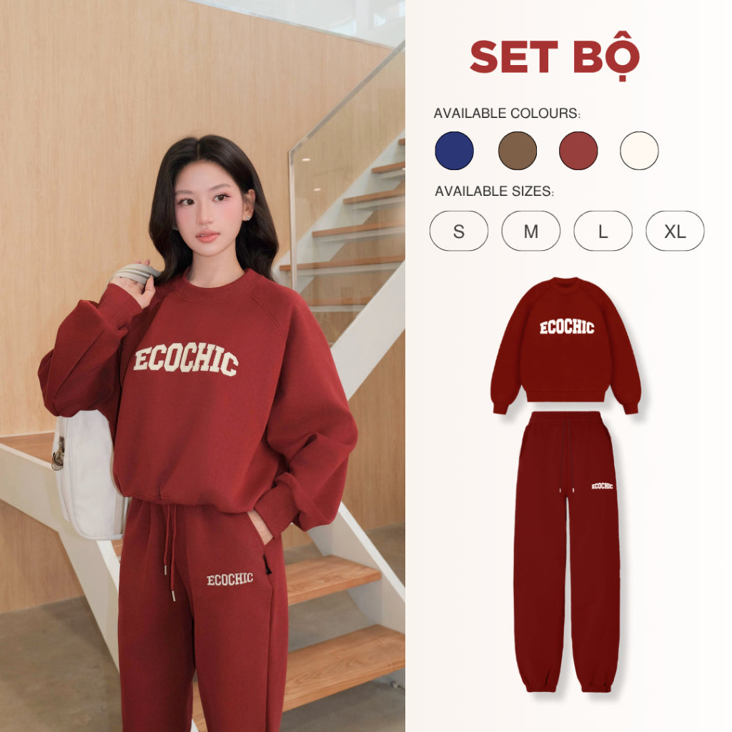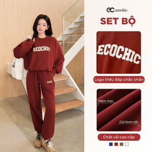 (LINK SALE) Set Bộ ECOCHIC CRIMSON WINTER Áo Sweater Quần Jogger Bo Gấu Chất Liệu Nỉ Hai Da Cao Cấp B187