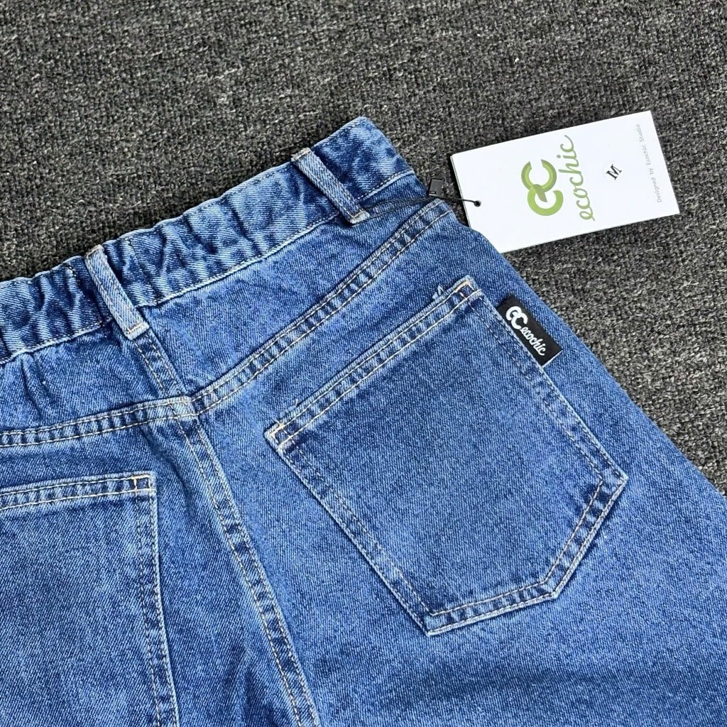Quần Đùi Denim ECOCHIC Cạp Cao Nam Nữ Cạp Chun Co Giãn Cao Cấp Chính Hãng B115