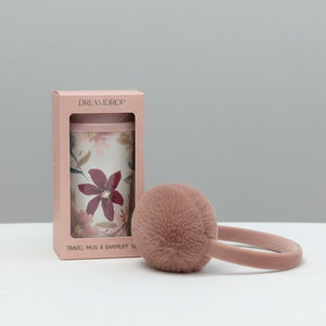 ( Quà tặng ) Set 2 Món Cốc Kèm Nắp Và Chụp Tai Màu Hồng Dream Drop Giữ Ấm Mùa Đông Tiện Lợi A979