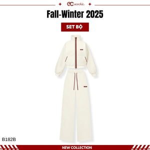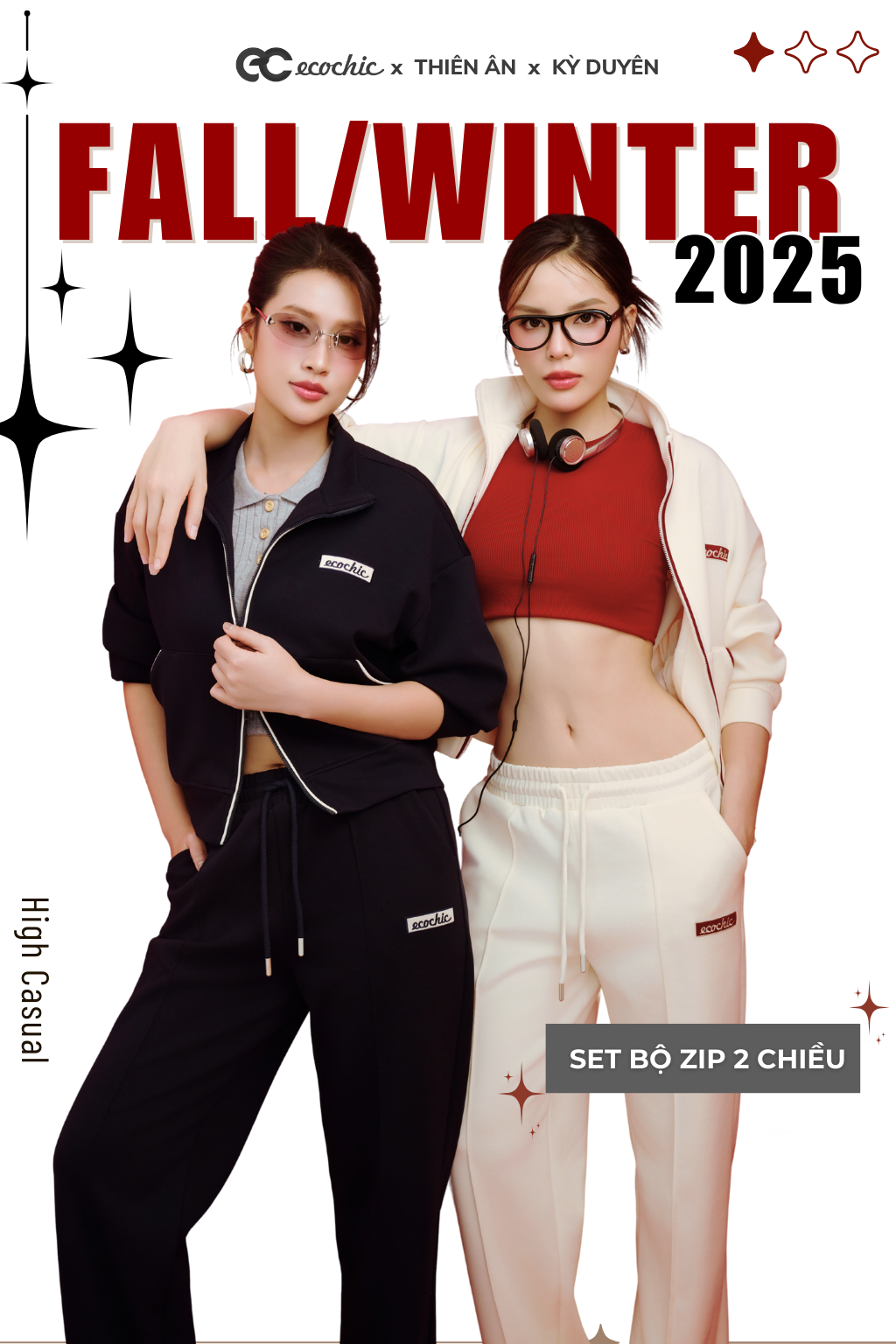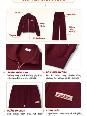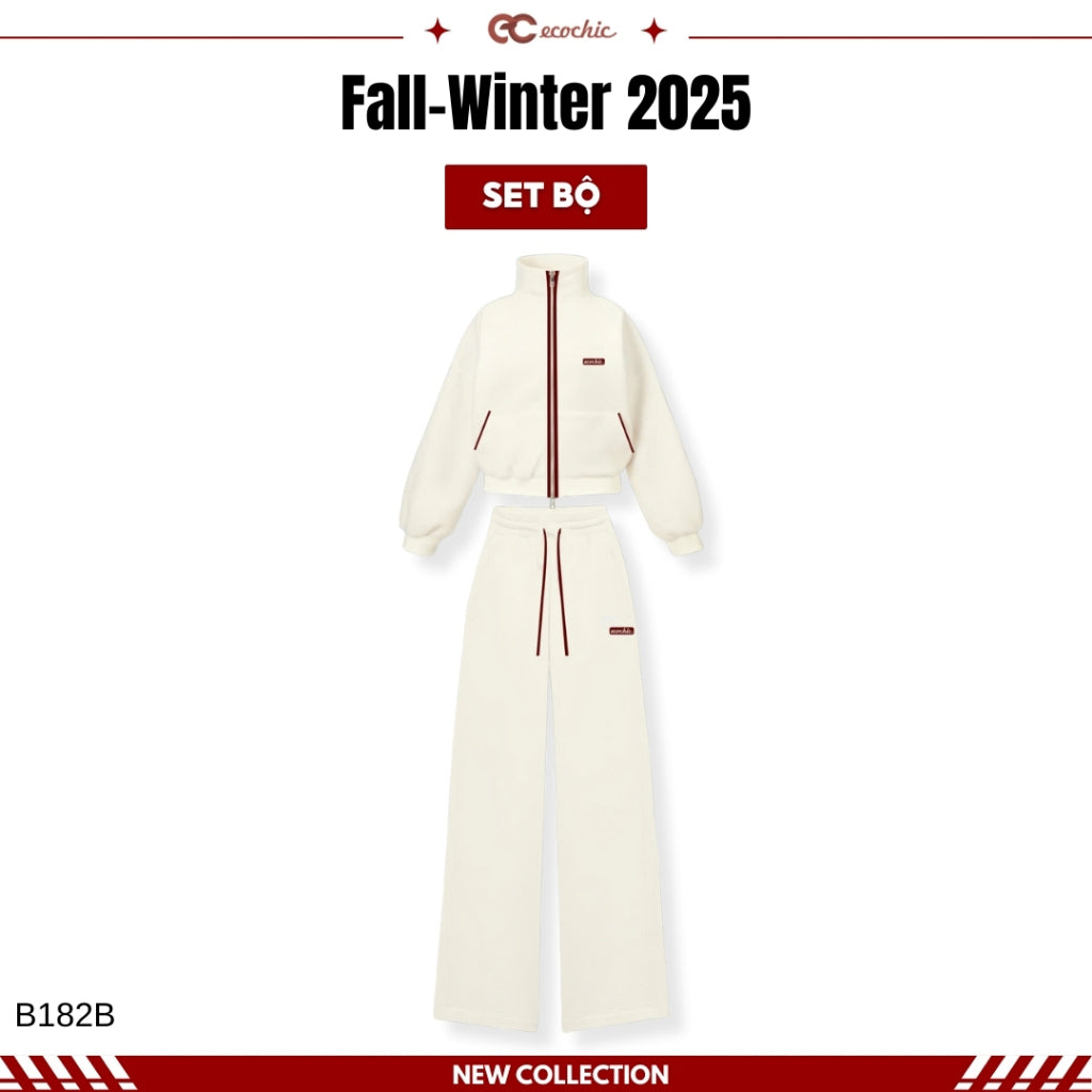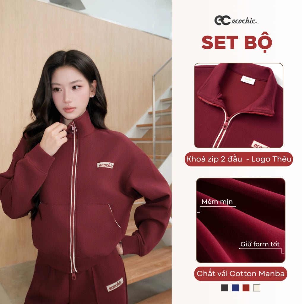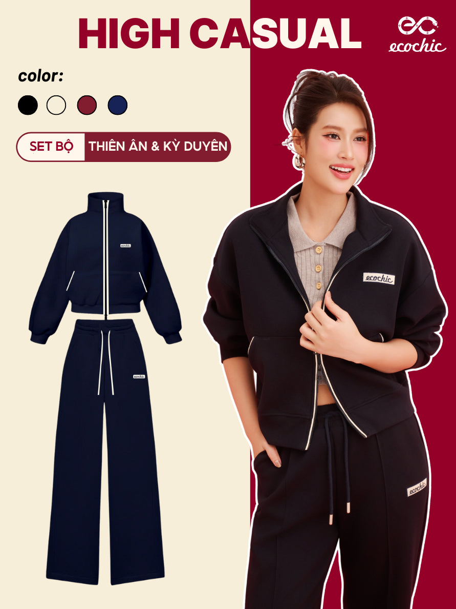 Set Bộ ECOCHIC AURORA GRACE Áo Polo Khoá Zip 2 Chiều Phối Quần Suông Cạp Cao Chất Liệu Cao Cấp Chính Hãng B182