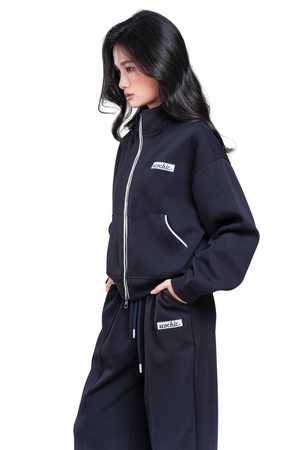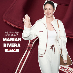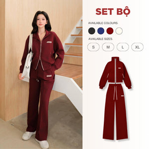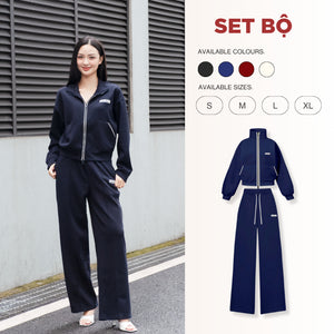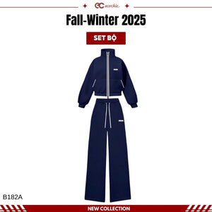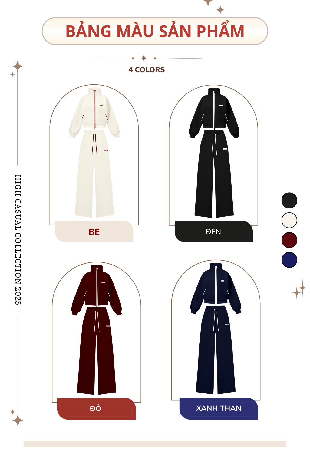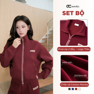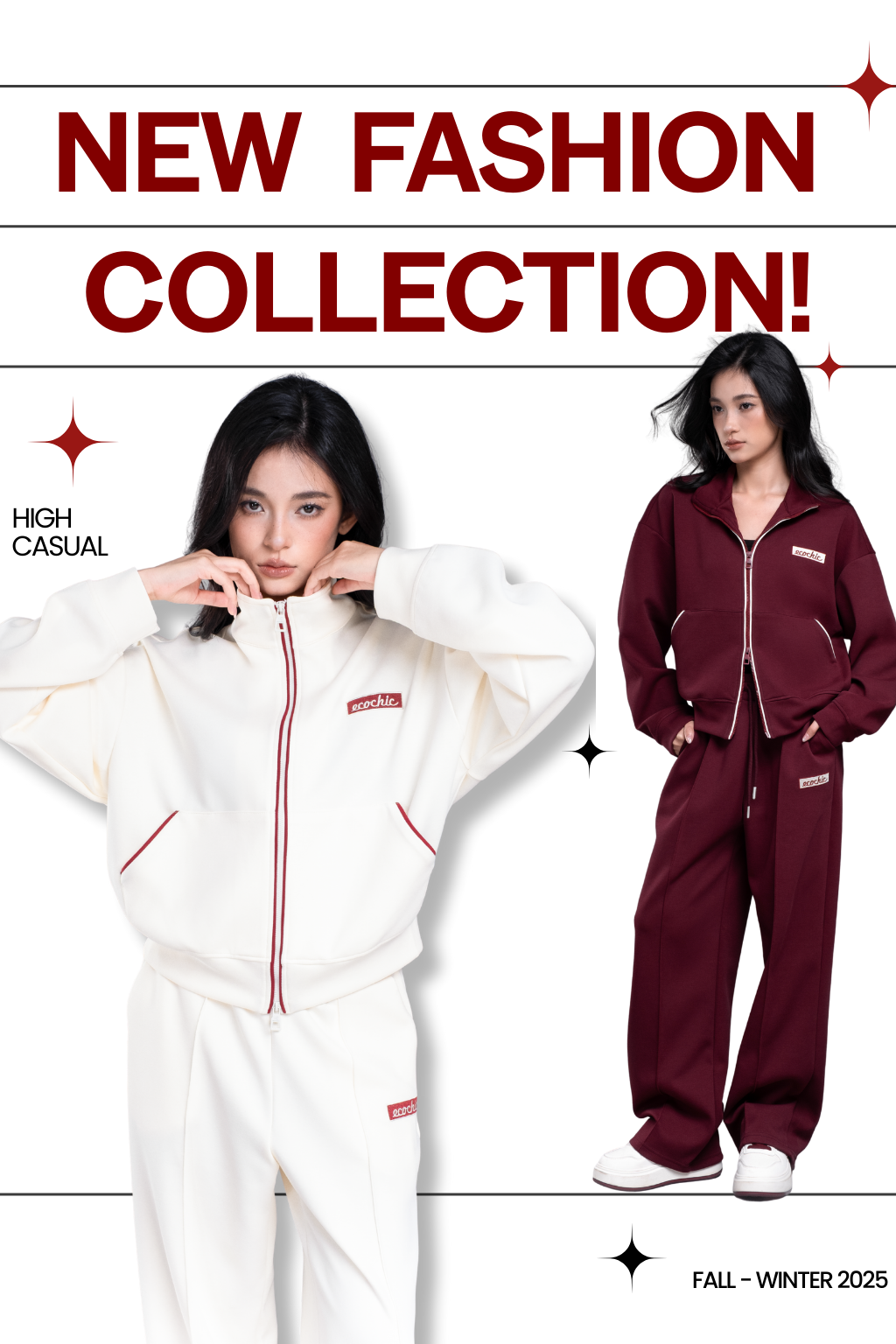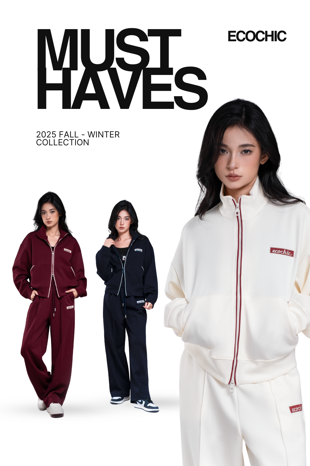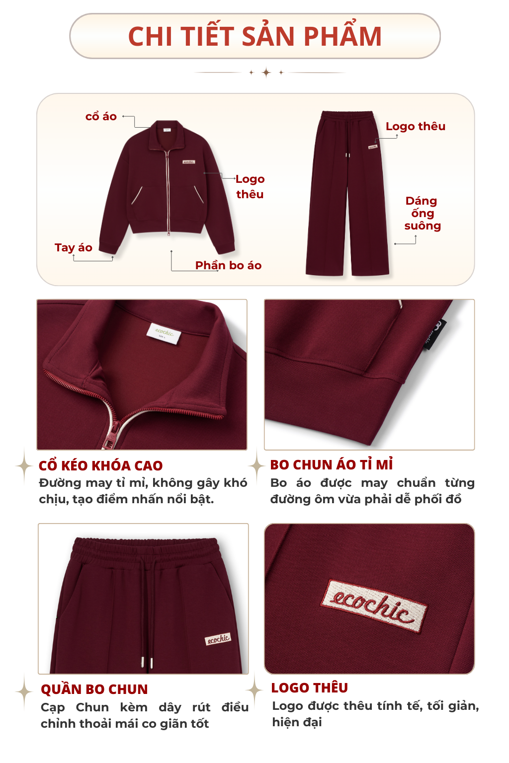 Set Bộ ECOCHIC AURORA GRACE Áo Polo Khoá Zip 2 Chiều Phối Quần Suông Cạp Cao Chất Liệu Cao Cấp Chính Hãng B182
