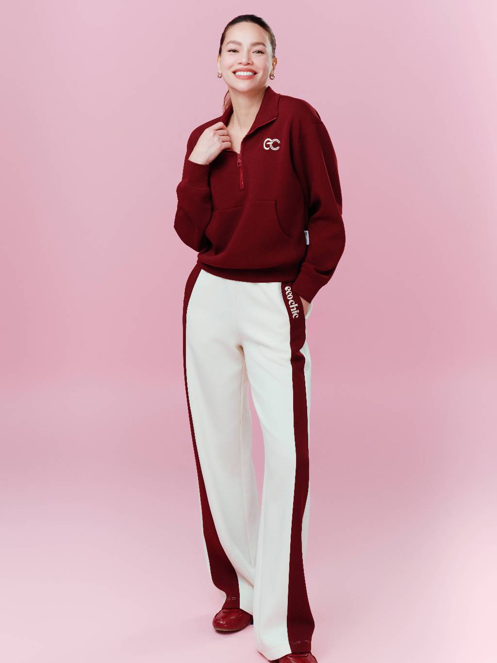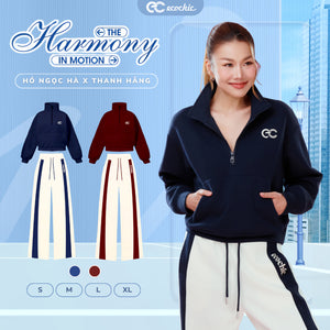 Home Set Bộ ECOCHIC DUAL FLOW SET Khoá Halfzip Cổ Cao Logo Ngực Quần Suông Phối Line Chất Liệu Cao Cấp Chính Hãng HNH B197