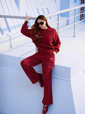 Set Bộ ECOCHIC GRAVITY SET Áo Sweater Basic Cổ Tròn Logo Ngực Quần Suông Chất Liệu Cao Cấp Chính Hãng HNH B208
