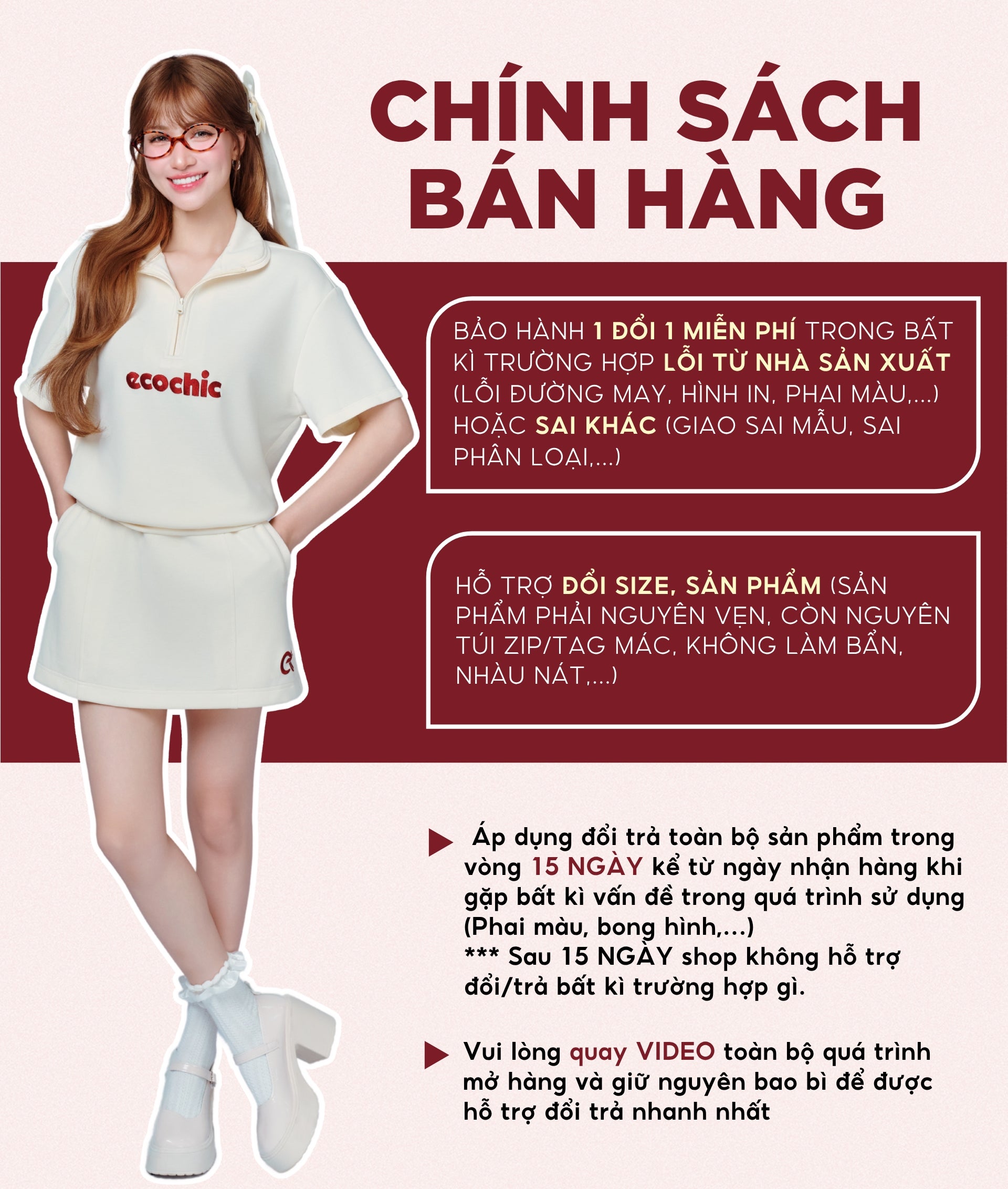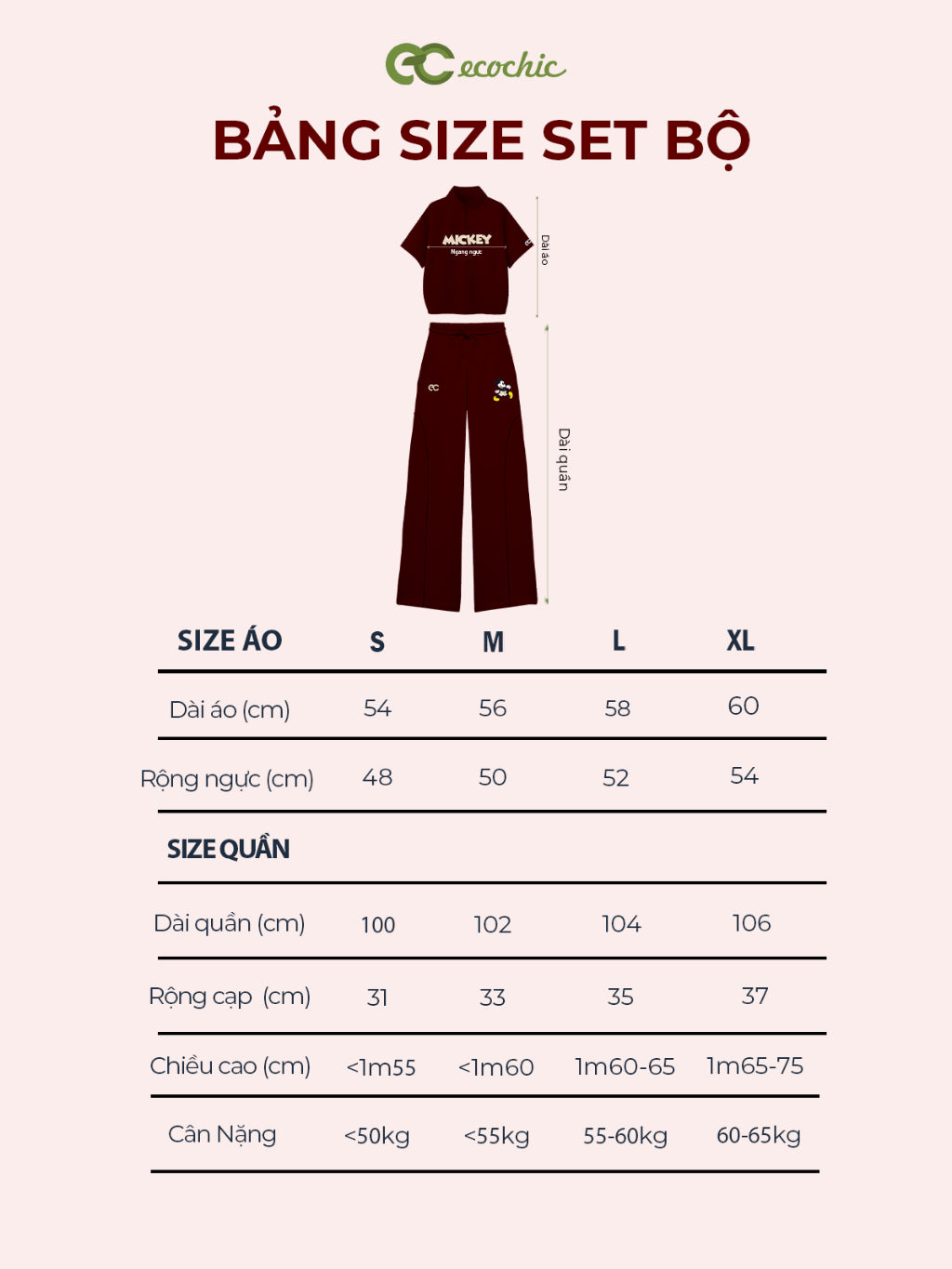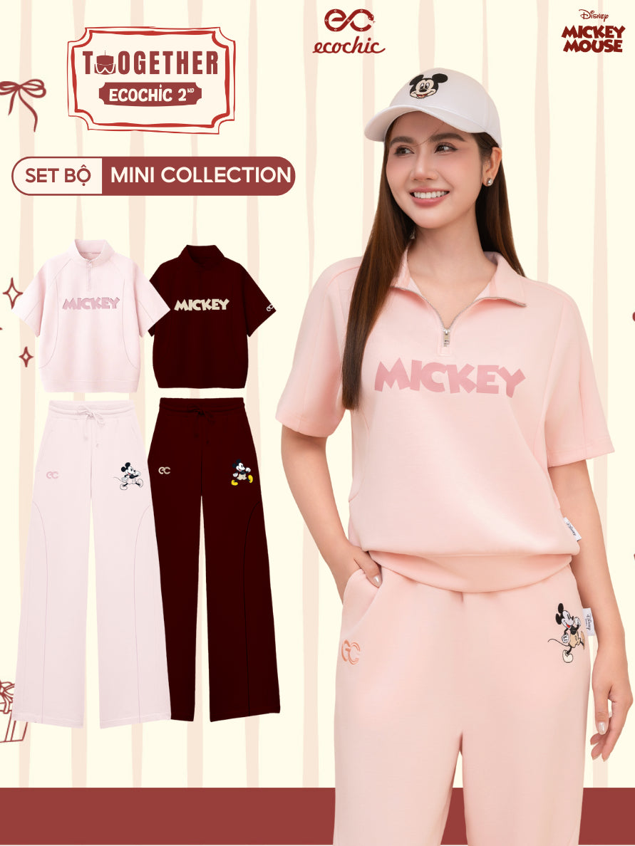 Set Bộ ECOCHIC MICKEY LUX SET Áo Tay Lỡ Cổ Cao Halfzip Quần Cạp Cao Chất Liệu Cao Cấp Chính Hãng Bản Quyền Disney SD002