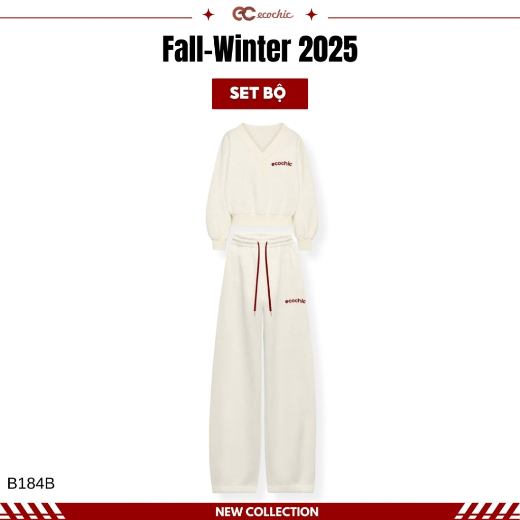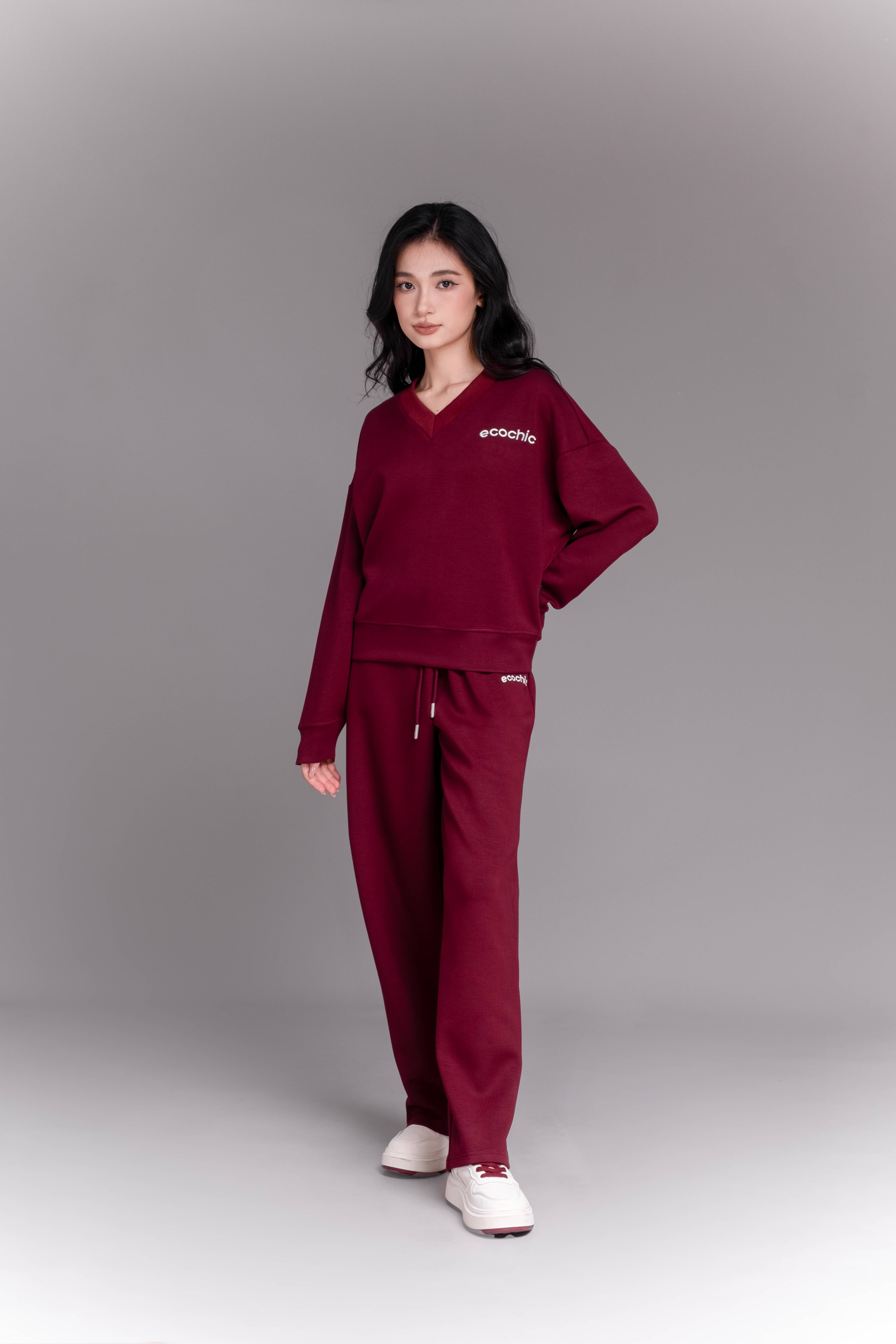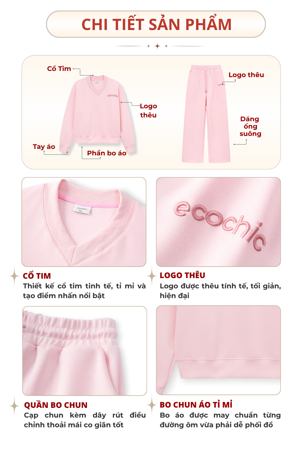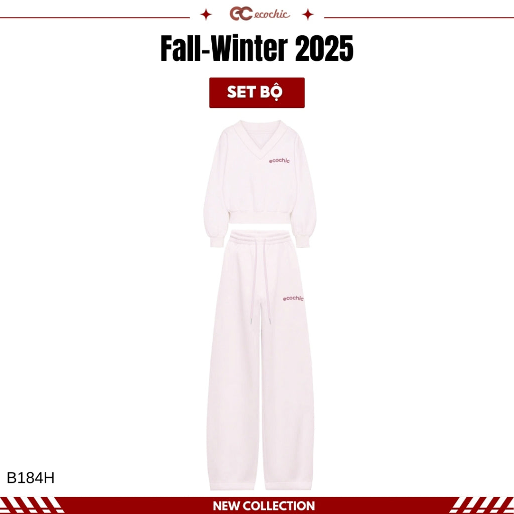 Set Bộ ECOCHIC SILENT LUXE Áo Cổ Tim Basic Quần Suông Cạp Cao Chất Liệu Vải Thun Cosy Sọc Cao Cấp Chính Hãng B184