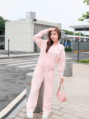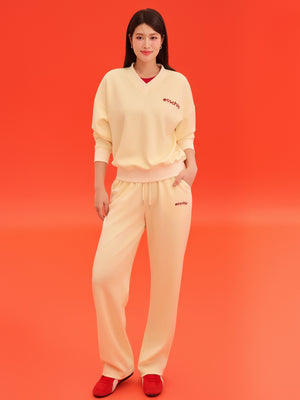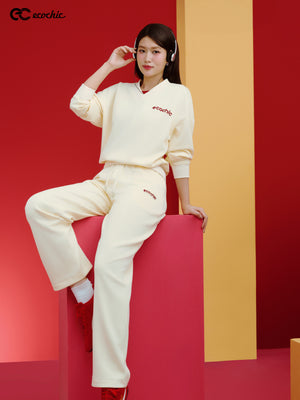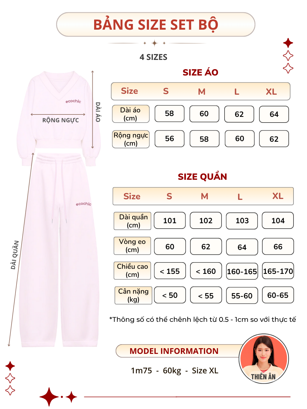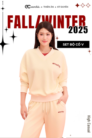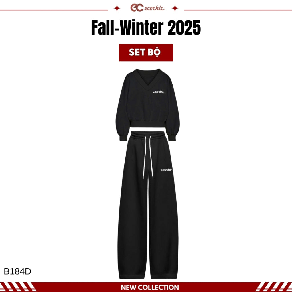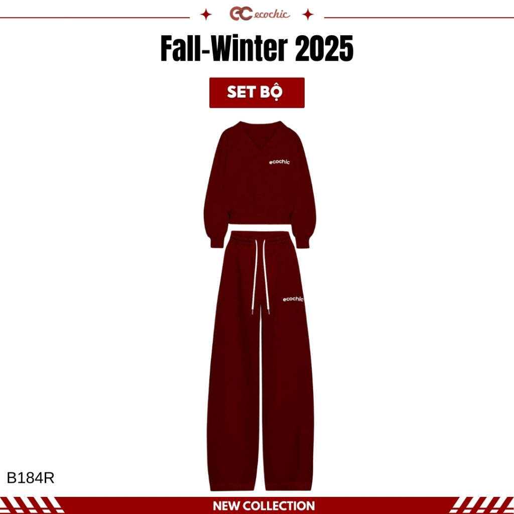Set Bộ ECOCHIC SILENT LUXE Áo Cổ Tim Basic Quần Suông Cạp Cao Chất Liệu Vải Thun Cosy Sọc Cao Cấp Chính Hãng B184