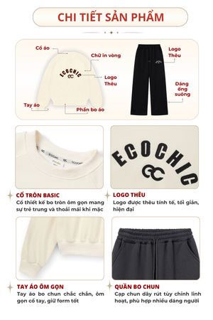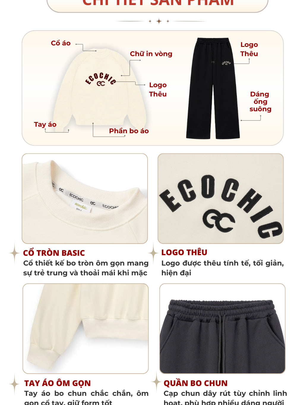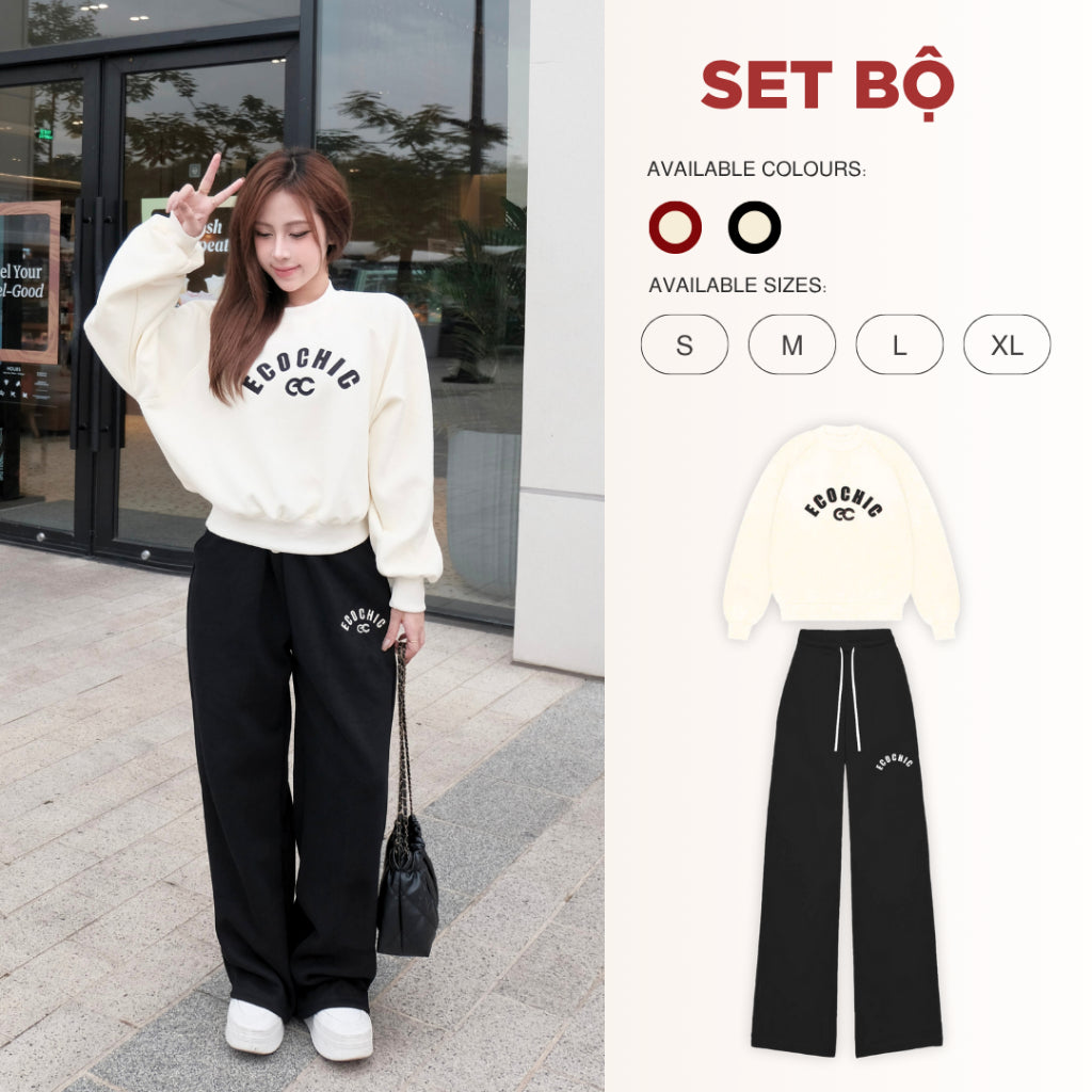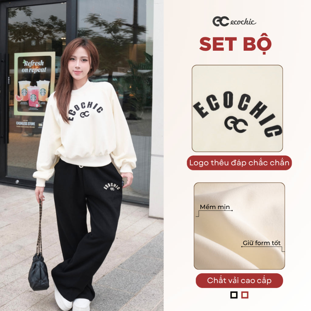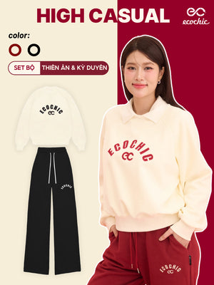 Set Bộ ECOCHIC SILENT LUXE Áo Sweater Quần Suông Dây Rút Phối Logo Chất Liệu Nỉ Hai Da Cao Cấp Chính Hãng B185