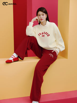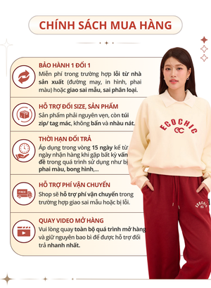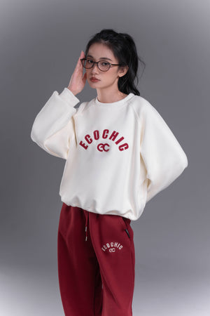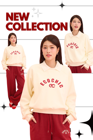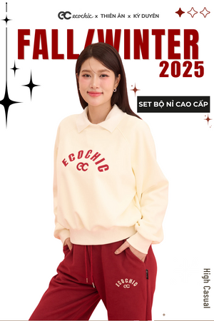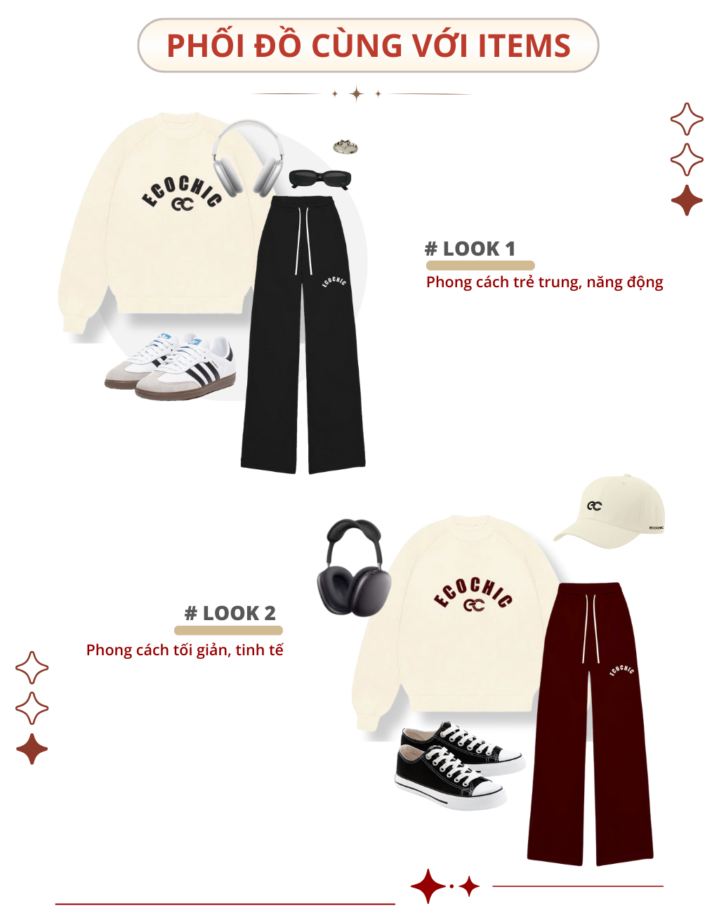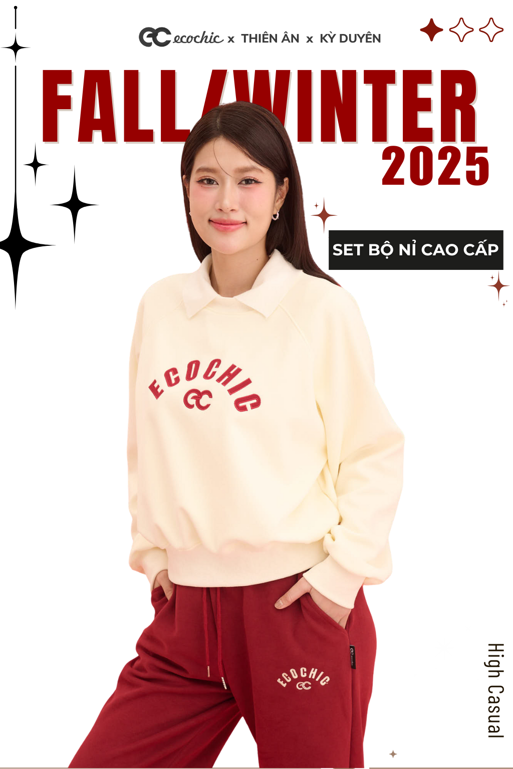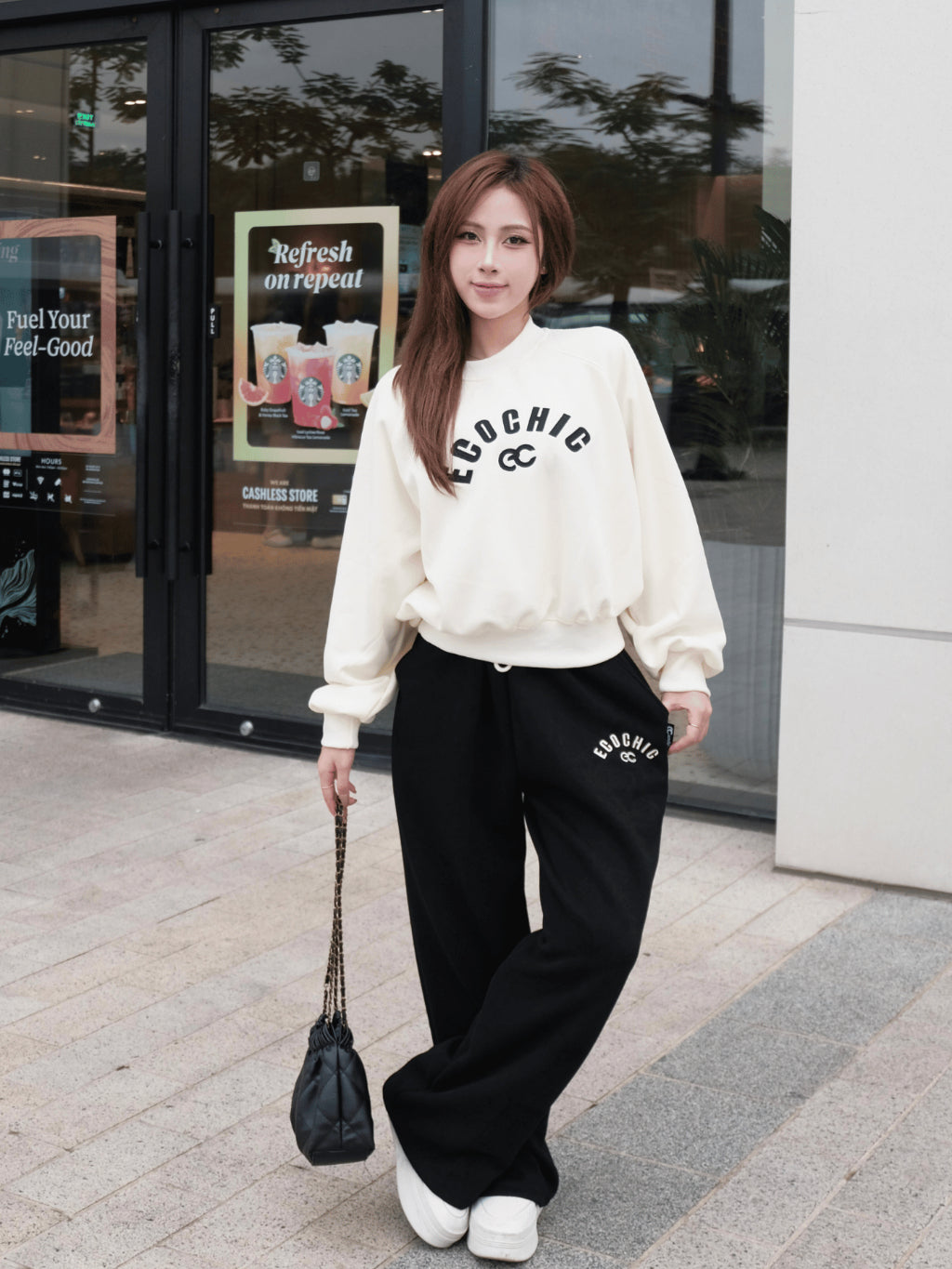 Set Bộ ECOCHIC SILENT LUXE Áo Sweater Quần Suông Dây Rút Phối Logo Chất Liệu Nỉ Hai Da Cao Cấp Chính Hãng B185