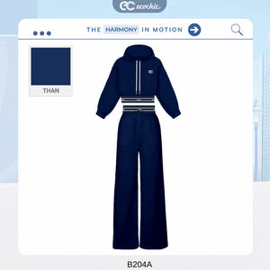Set Bộ ECOCHIC VELOCITY SET Áo Crop Hoodie Phối Bo Sọc - Quần Suông Dây Rút Chất Liệu Cao Cấp Chính Hãng HNH B204