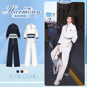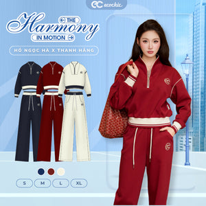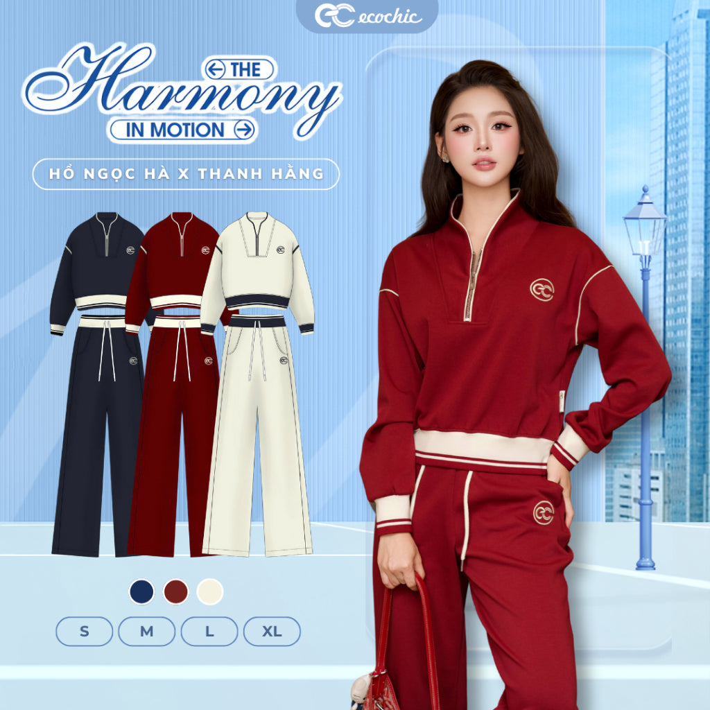 Set Bộ Nỉ Mịn ECOCHIC Áo Crop Cổ Khoá Zip Phối Viền Quần Suông Chất Liệu Cao Cấp Chính Hãng HNH B205