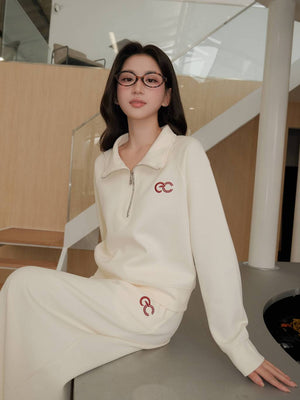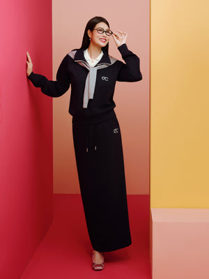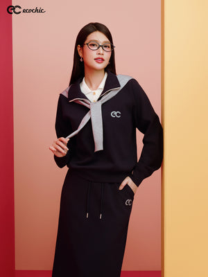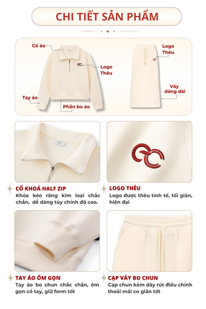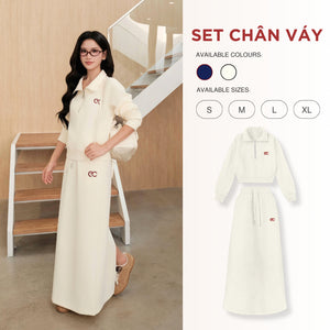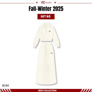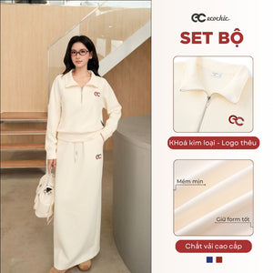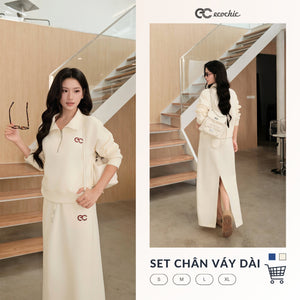 Set Bộ Váy Dài ECOCHIC Áo Crop Cổ Cao Halfzip Logo Phối Chân Váy Dài Dây Rút Chất Liệu Cao Cấp Chính Hãng B194