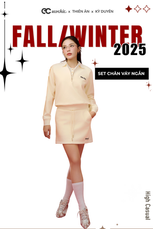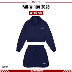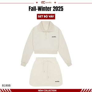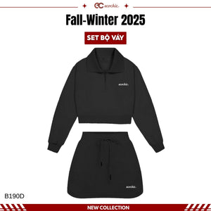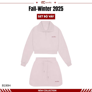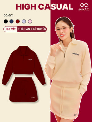 Set Bộ Váy ECOCHIC FROST WHISPER Áo Crop Dài Tay Phối Chân Váy Dây Rút Chất Liệu Vải Rayon Trơn Cao Cấp Chính Hãng B190