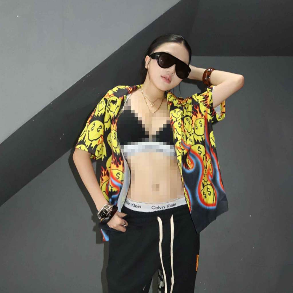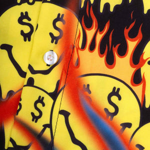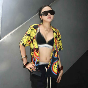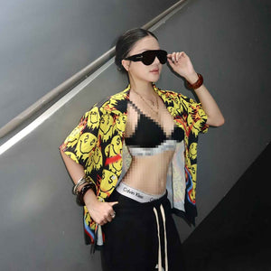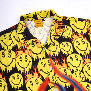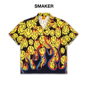 [SMAKER] Áo sơ mi đen vàng hoạ tiết mặt cười vải lụa - SMILEY BOXY SHIRT