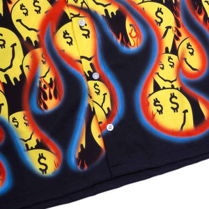 Home [SMAKER] Áo sơ mi đen vàng hoạ tiết mặt cười vải lụa - SMILEY BOXY SHIRT