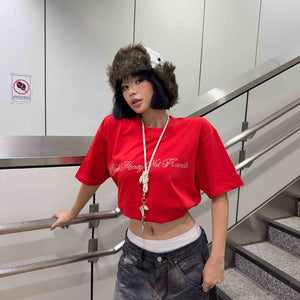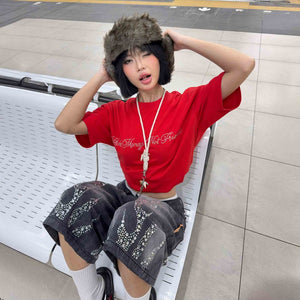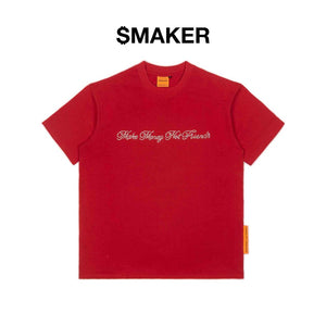 [SMAKER] Áo thun 100% cotton màu đỏ đính đá chữ make money not friends - ICED OUT MMNF TEE IN RED