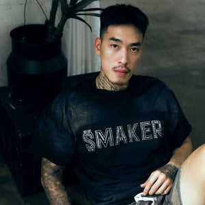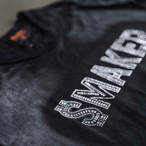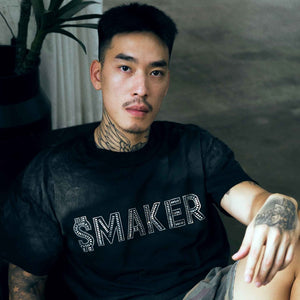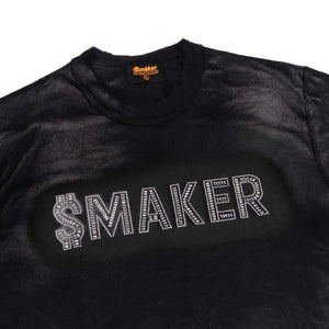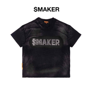 [SMAKER] Áo thun 100% cotton washed unisex màu đen đính đá màu đen - $MAKER BAGUETTE WASHED TEE IN BLACK