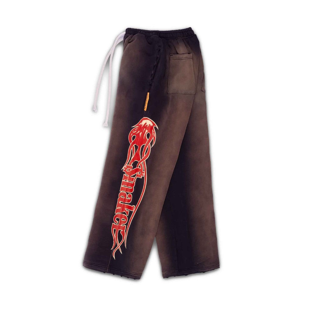 FIRE LOGO WASHED SWEAT PANTS IN BROWN