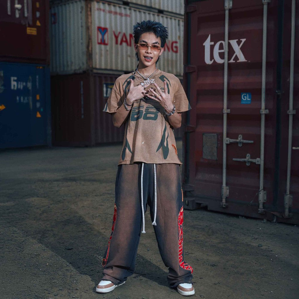 [SMAKER] Quần dài 100% cotton nỉ màu nâu - FIRE LOGO WASHED SWEAT PANTS IN BROWN