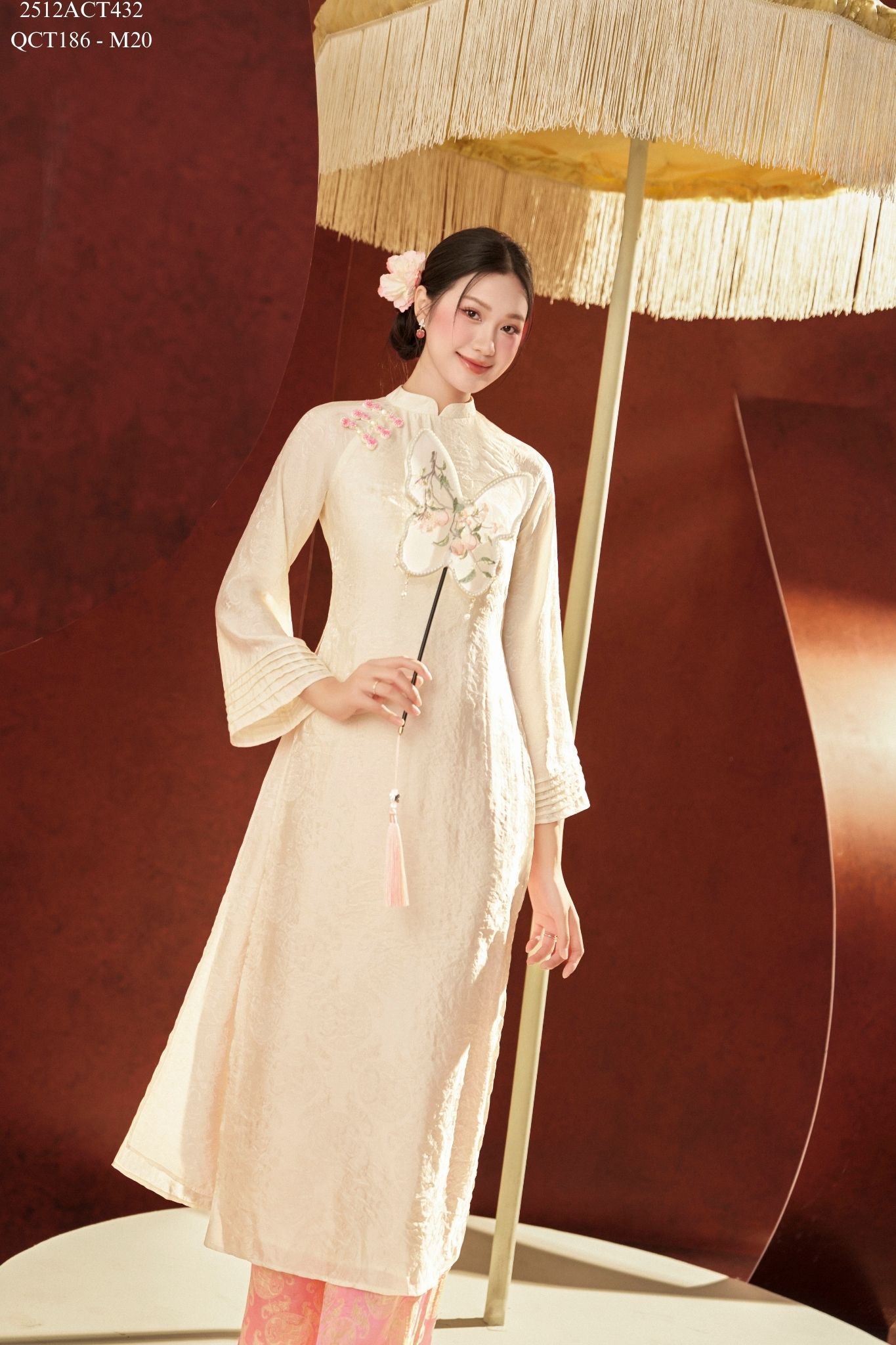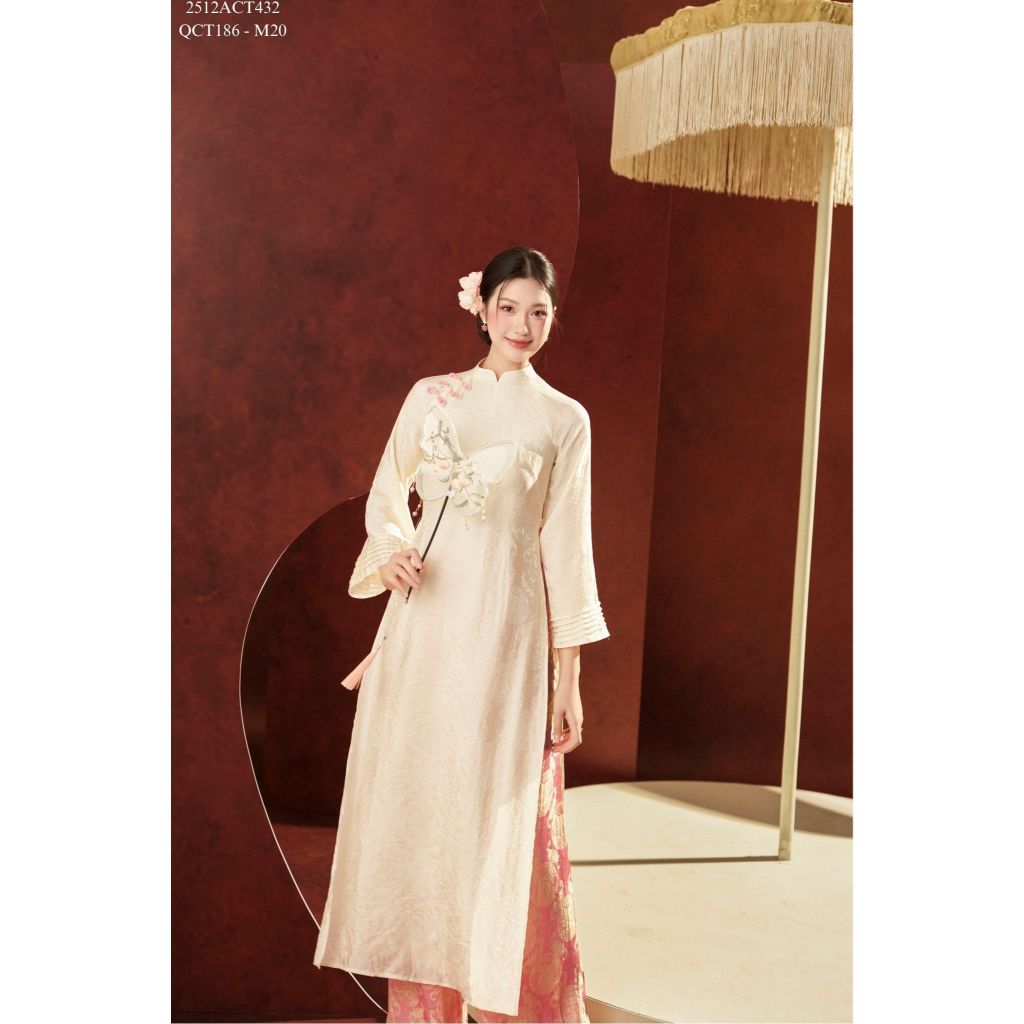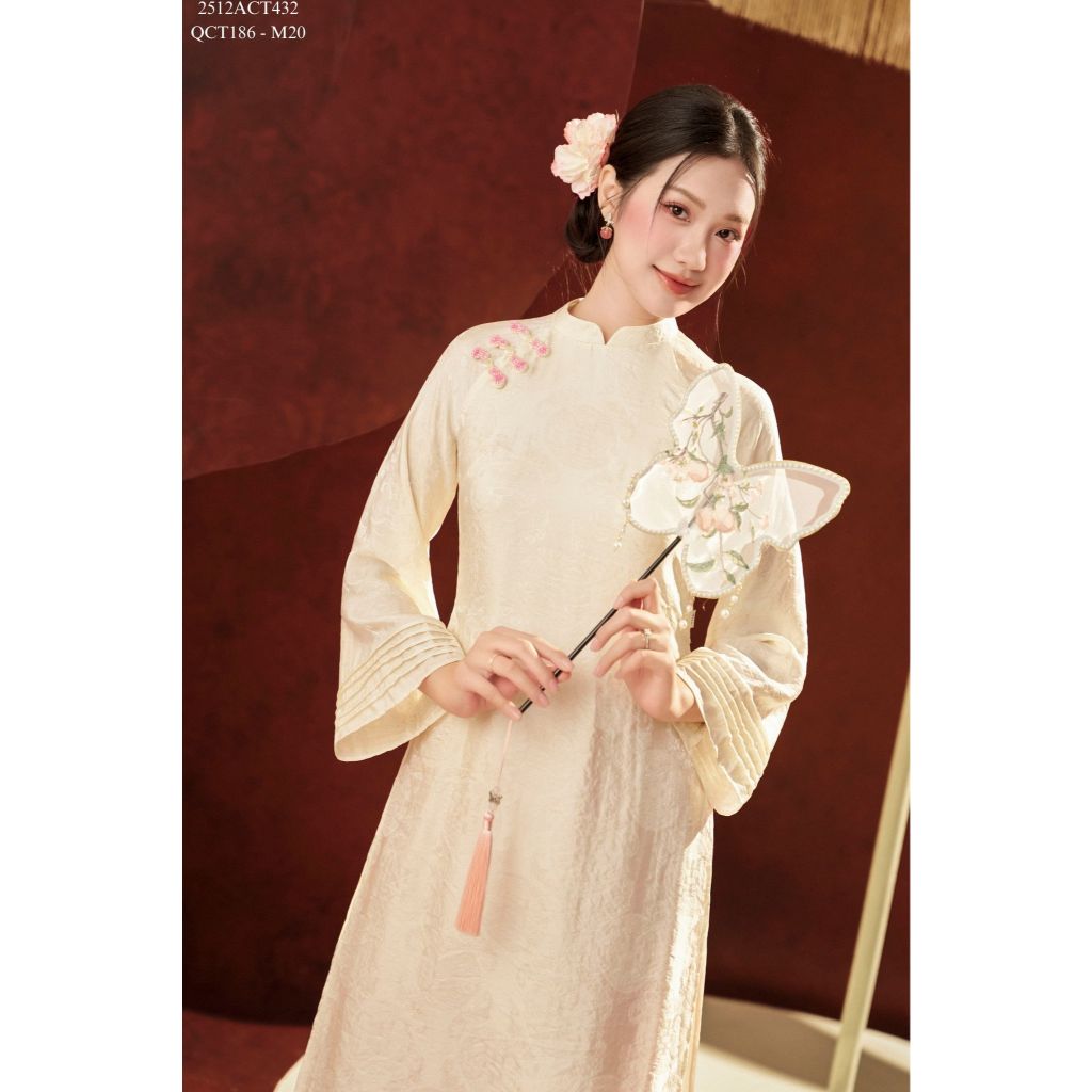 Áo dài Tết truyền thống thiết kế cổ tàu 4 tà khuy tàu (Không kèm quần) 2512ACT432