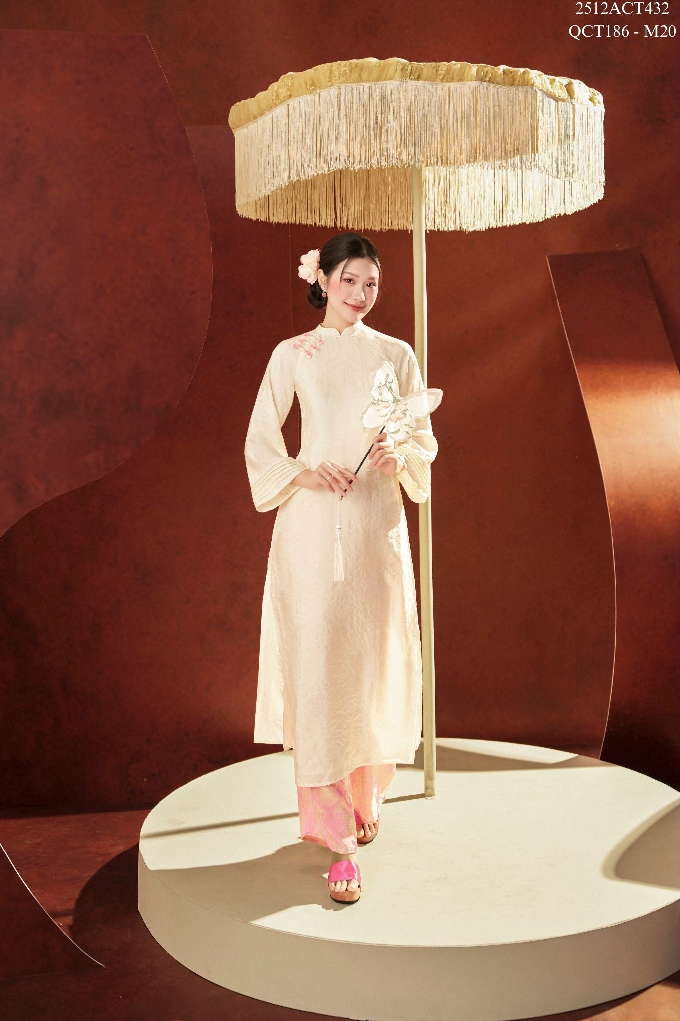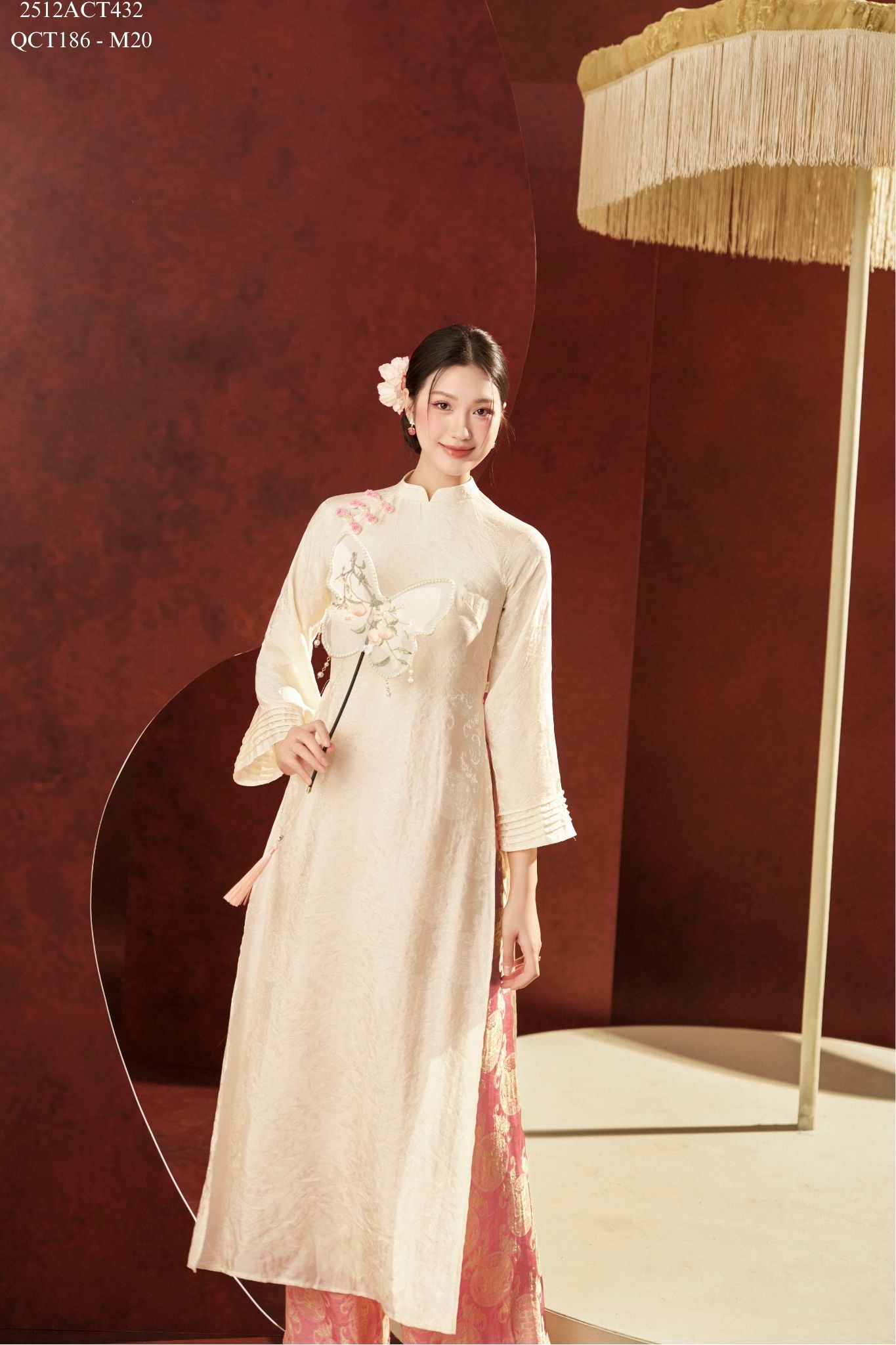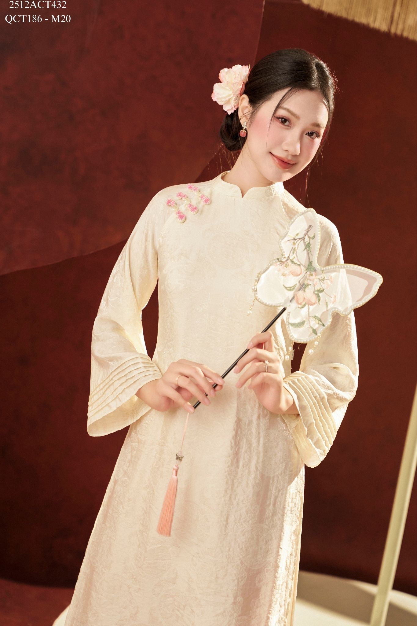 Áo dài Tết truyền thống thiết kế cổ tàu 4 tà khuy tàu (Không kèm quần) 2512ACT432
