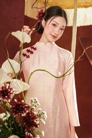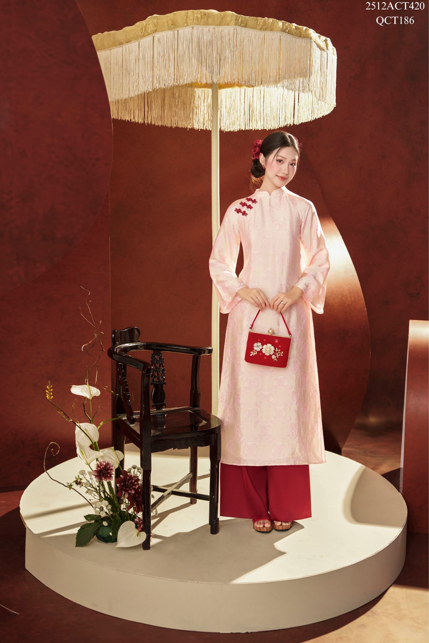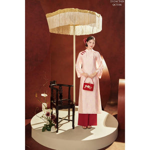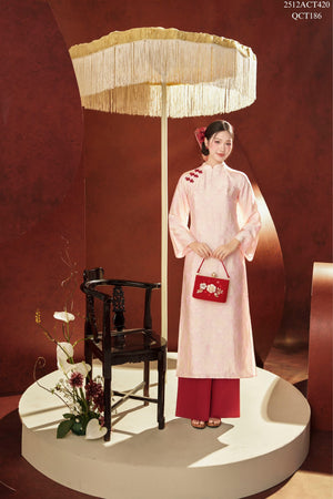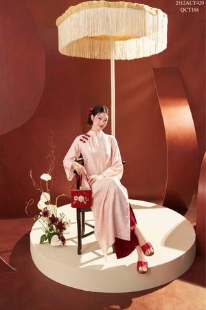 Áo dài Tết truyền thống thiết kế cổ tàu đính 3 hò nhẹ nhàng 2512ACT420