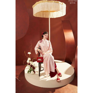 Thông tin sản phẩm : [Tâm nhu Ảnh nguyệt] TIINSTORE Áo dài Tết truyền thống thiết kế cổ tàu đính 3 hò nhẹ nhàng (Không kèm quần) 2512ACT420