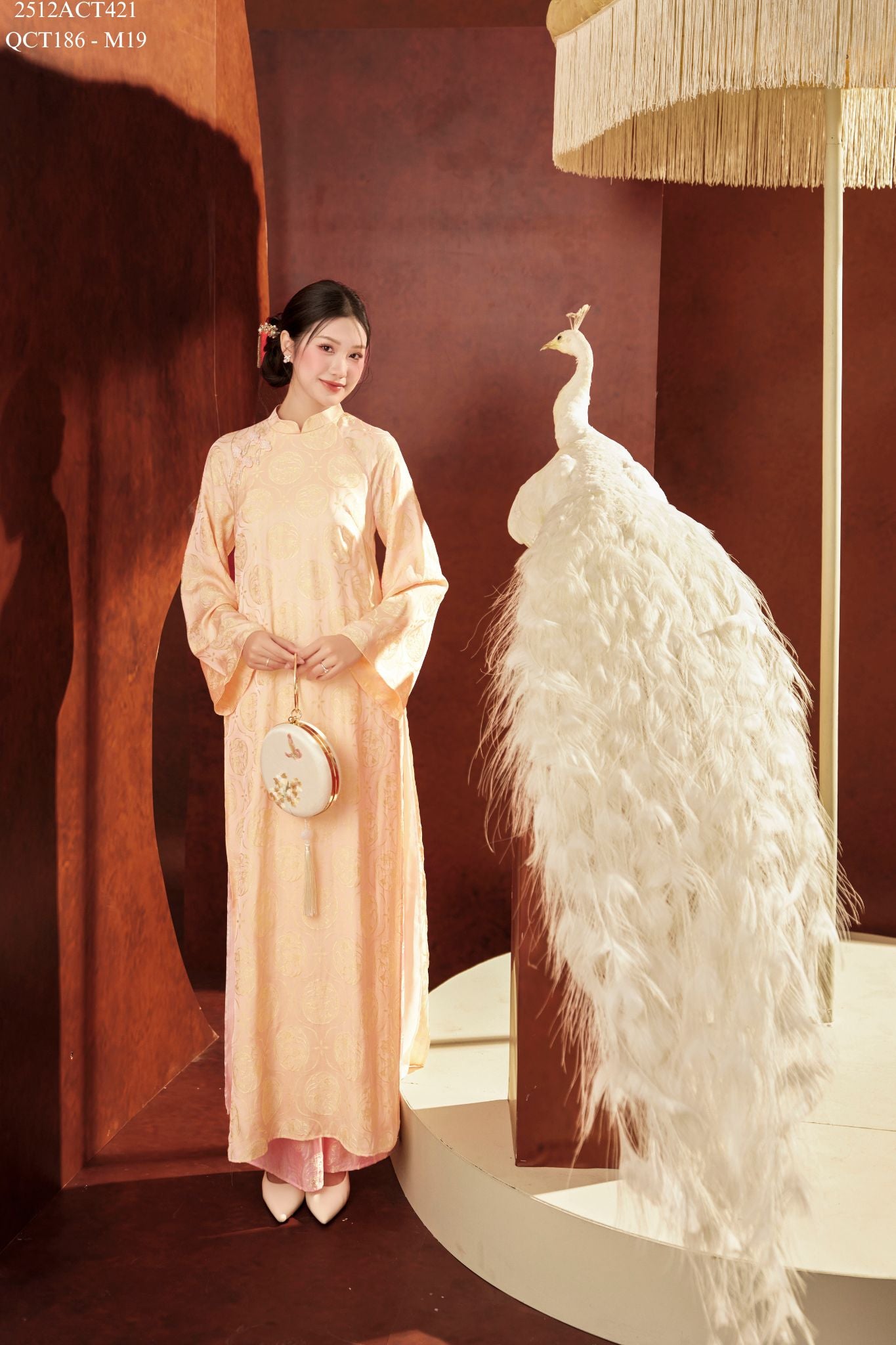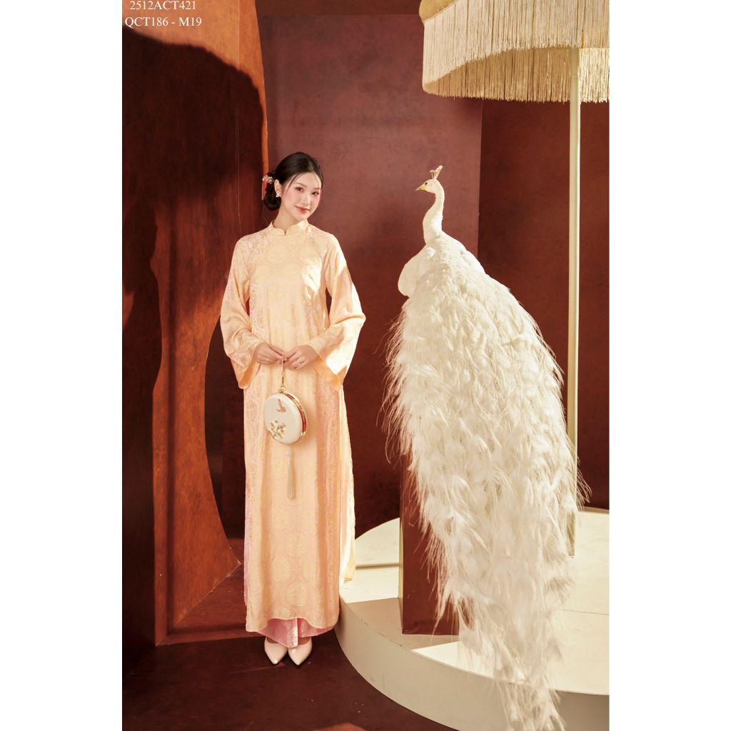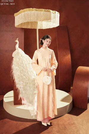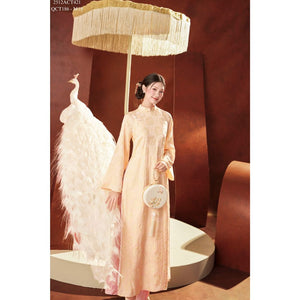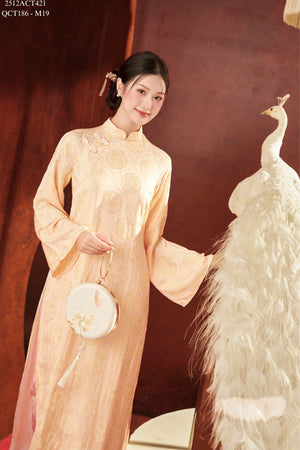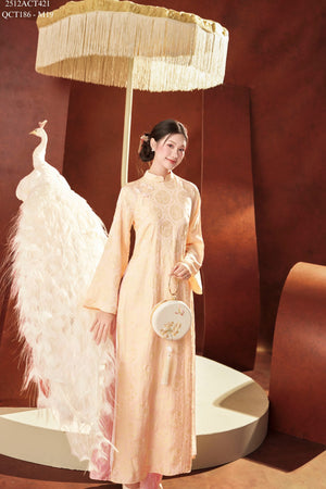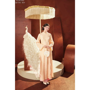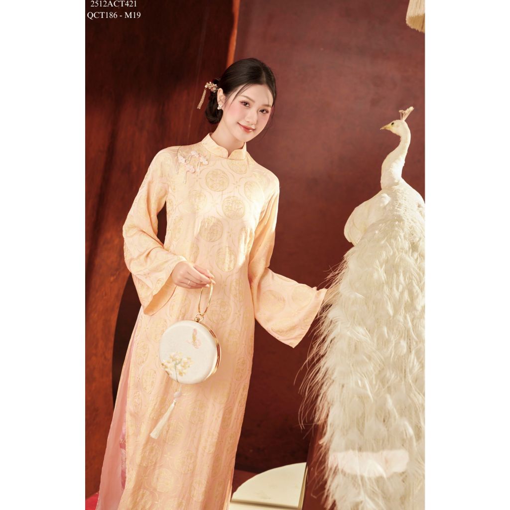 Áo dài Tết truyền thống thiết kế cổ tàu đính khuy tàu 4 tà (Không kèm quần) 2512ACT421