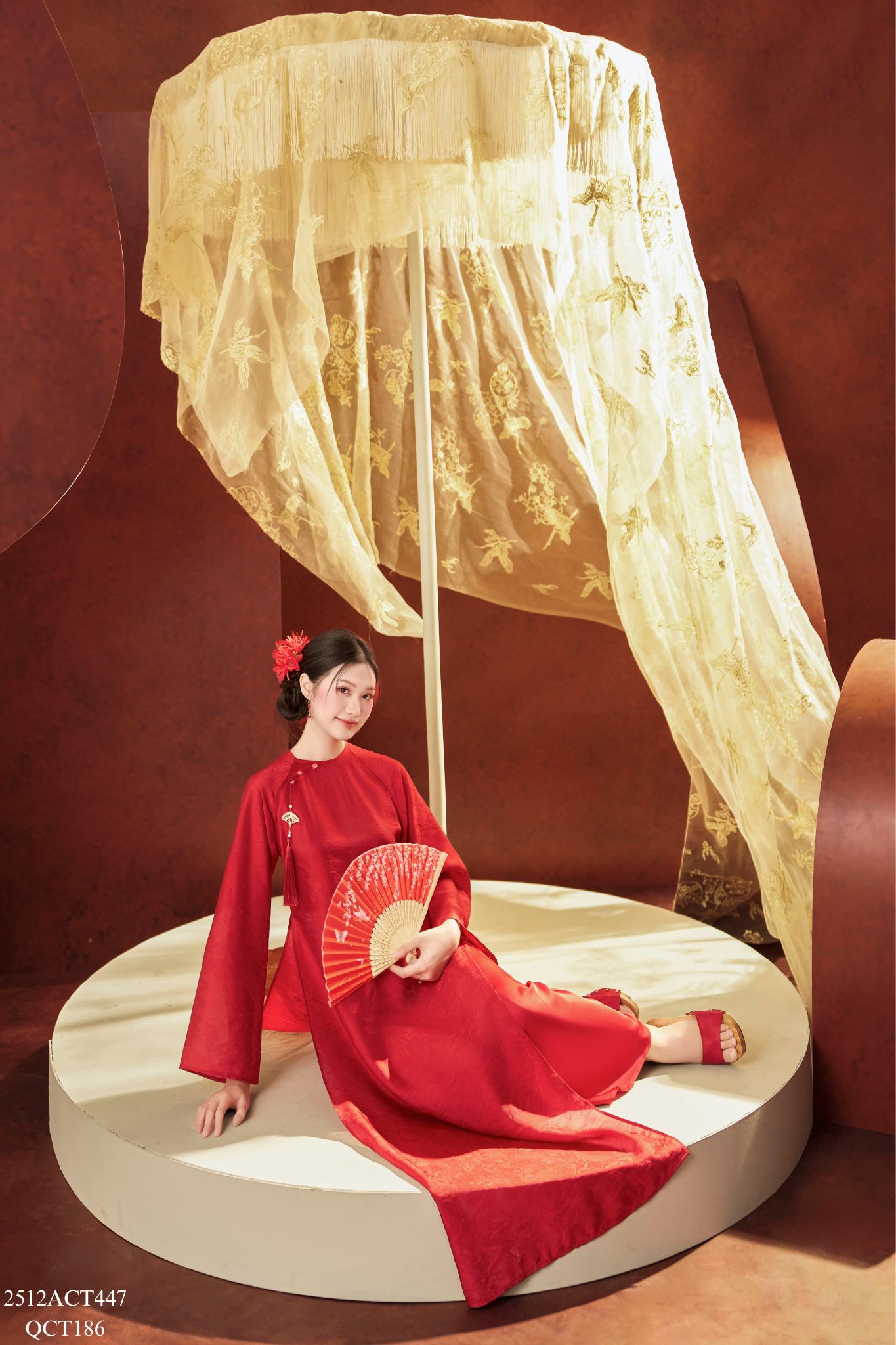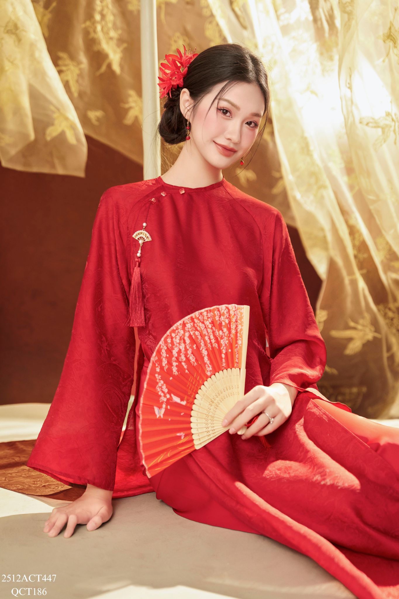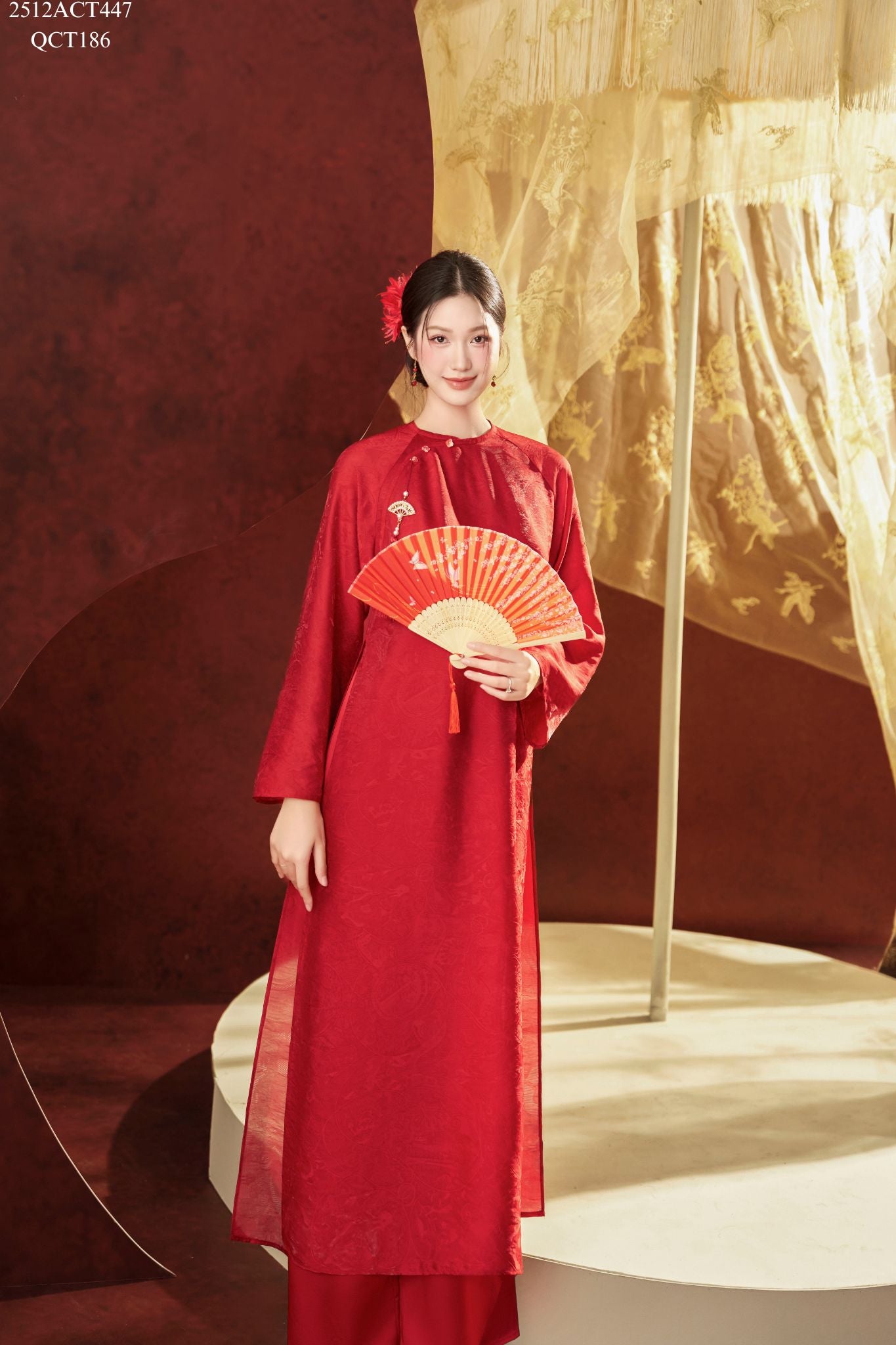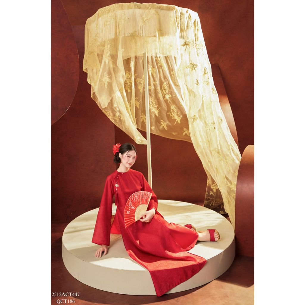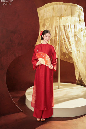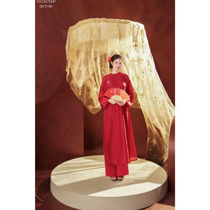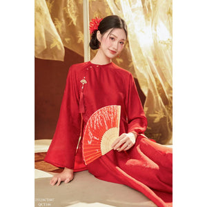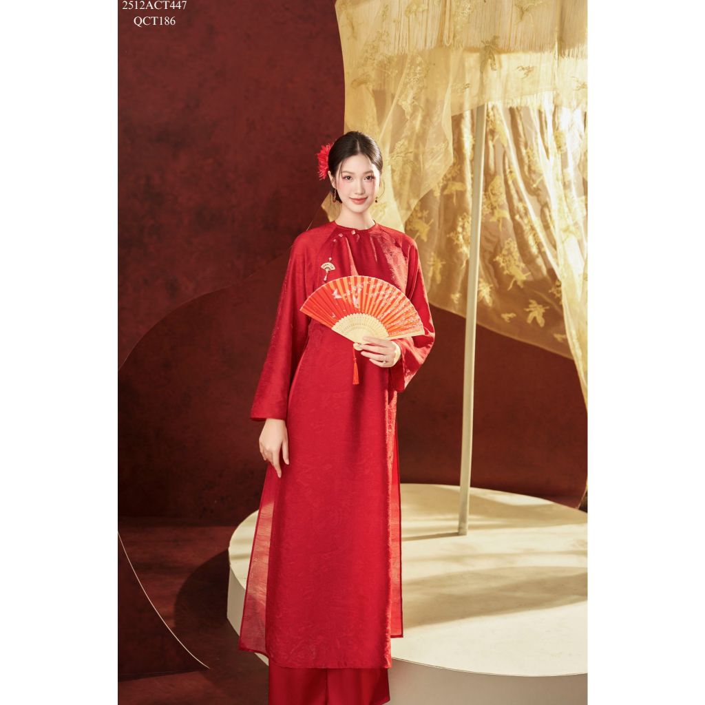 Áo dài Tết truyền thống thiết kế cổ tròn nẹp lượn đính khuy (Không kèm quần) 2512ACT447