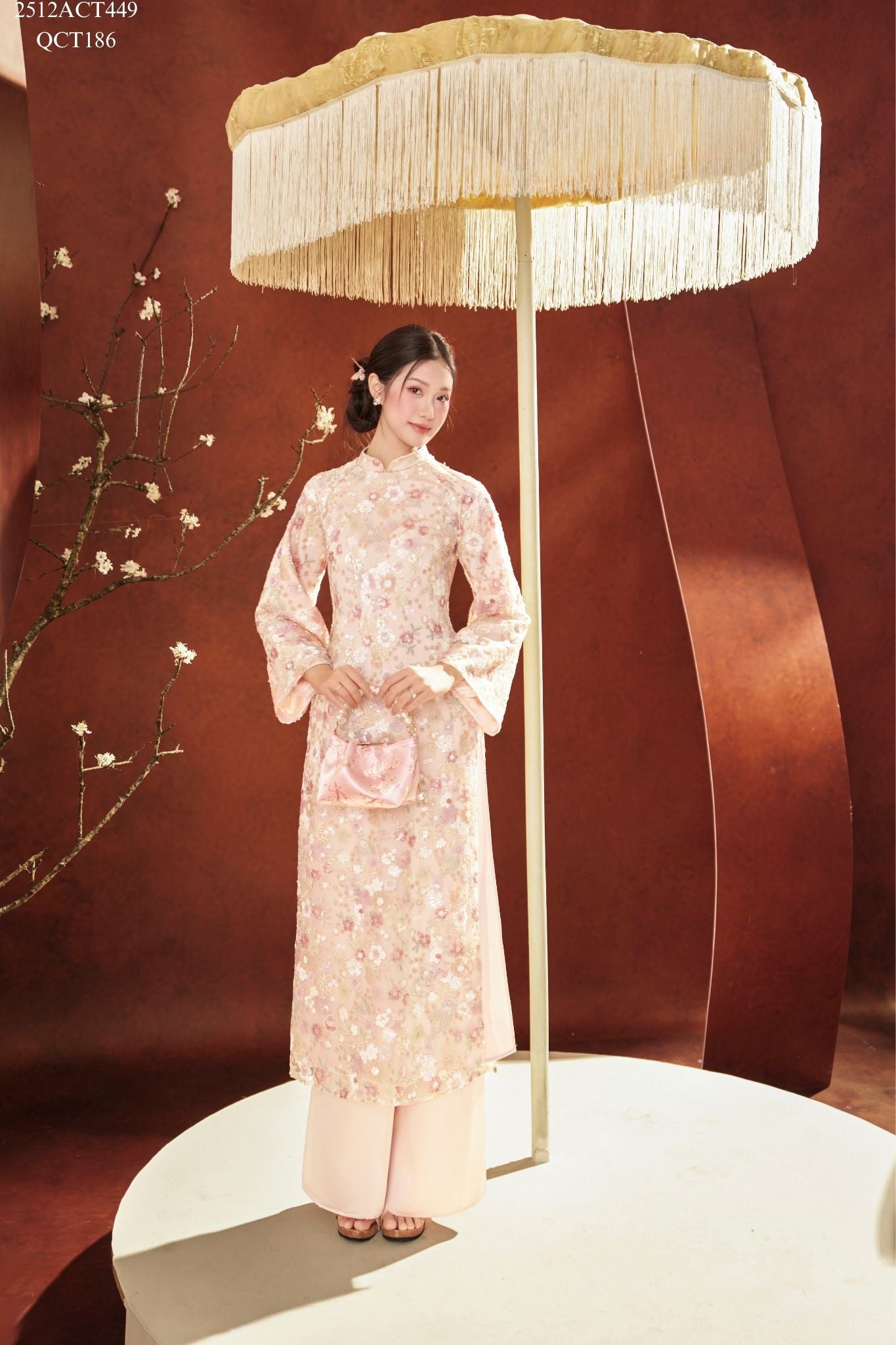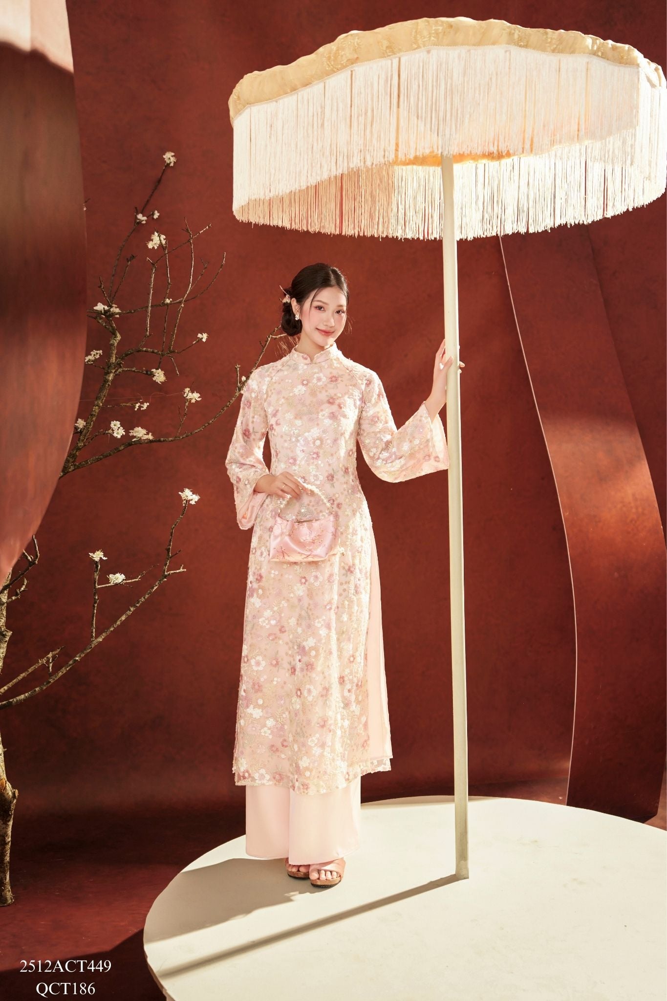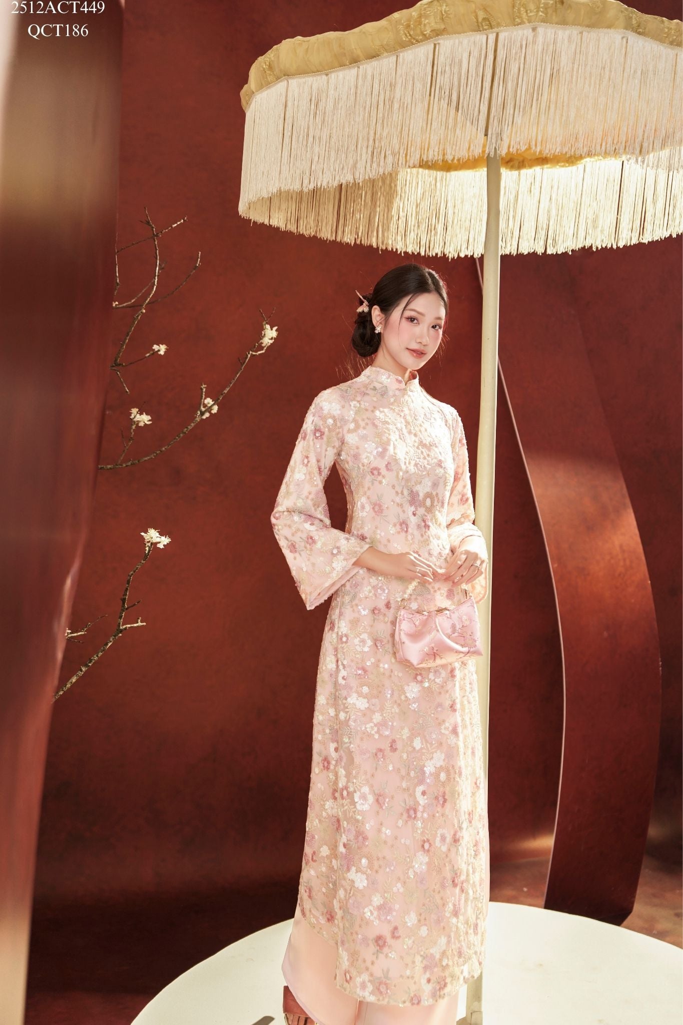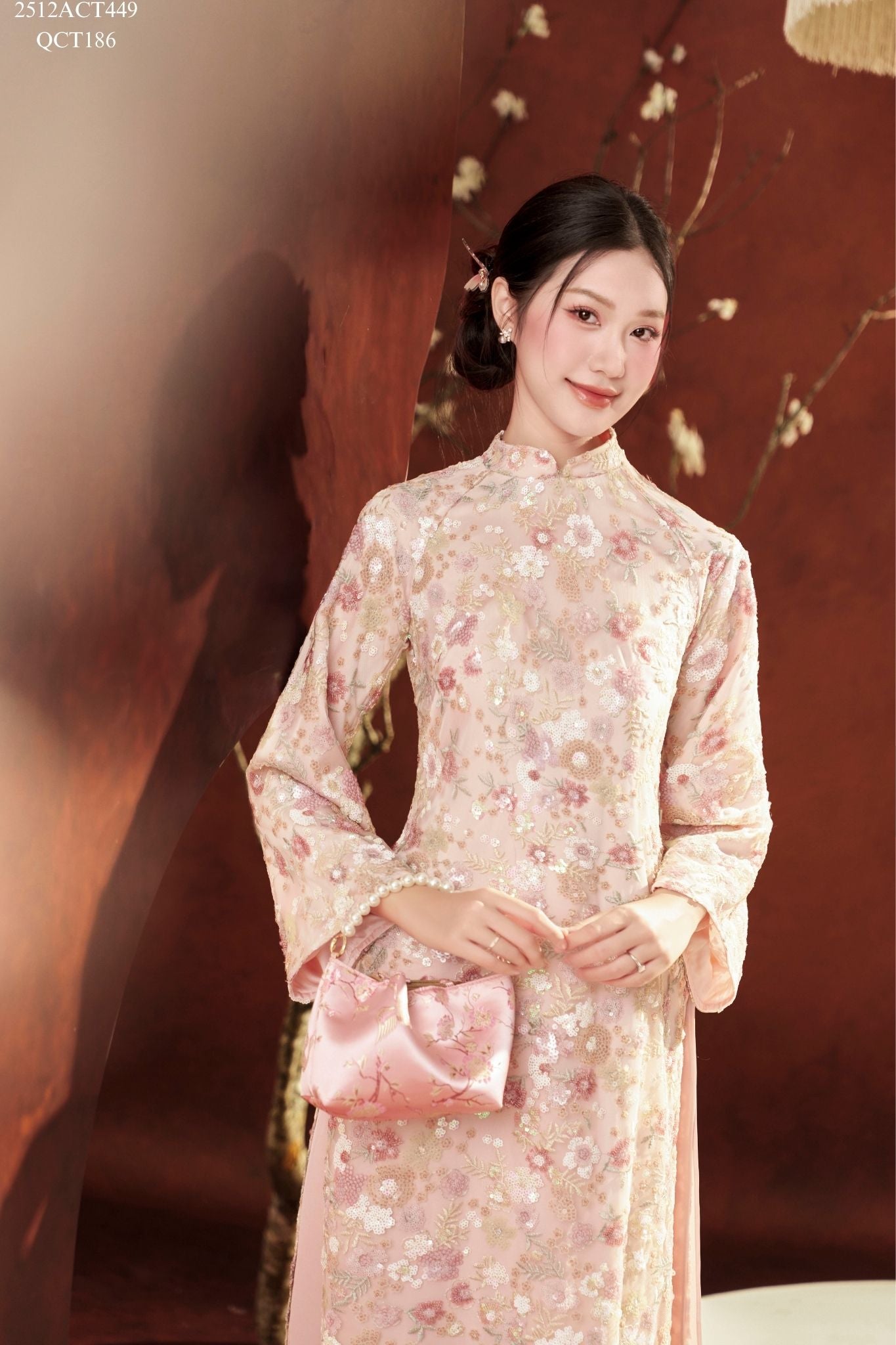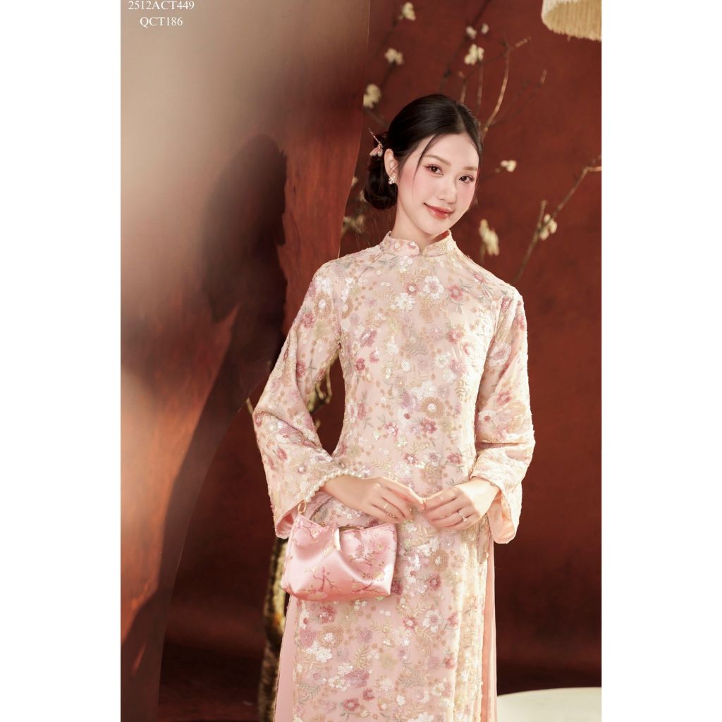 Áo dài Tết truyền thống thiết kế kim sa cổ tàu 4 tà (Không kèm quần) 2512ACT449