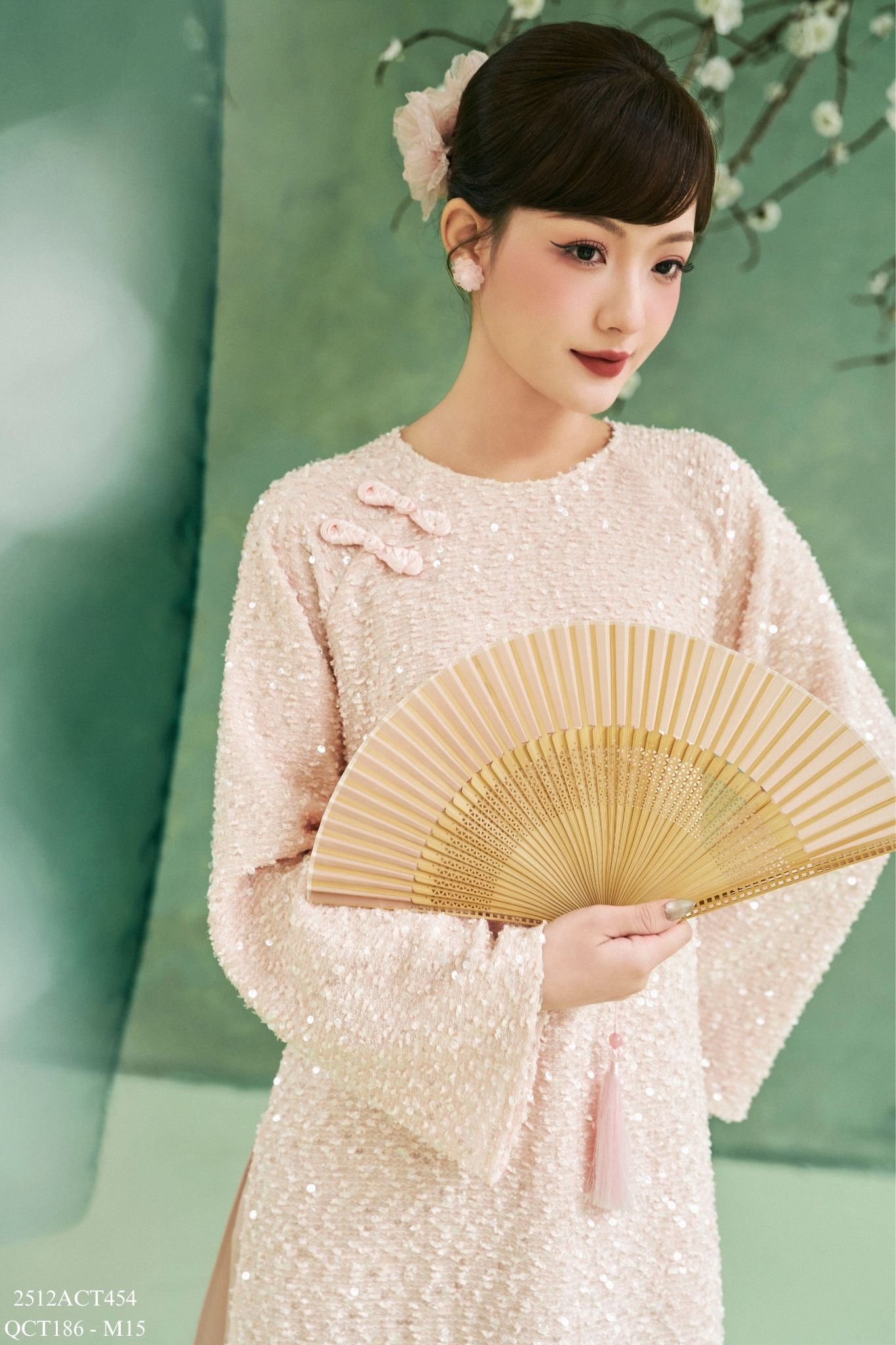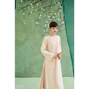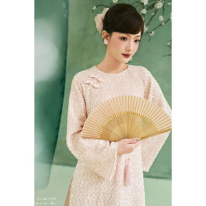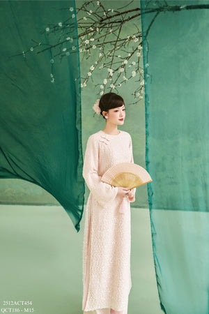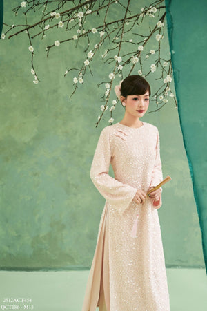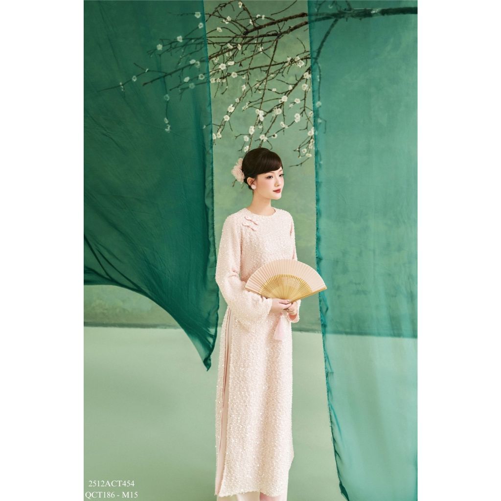 Áo dài Tết truyền thống thiết kế cổ tròn khuy tàu kim sa (Không kèm quần) 2512ACT454